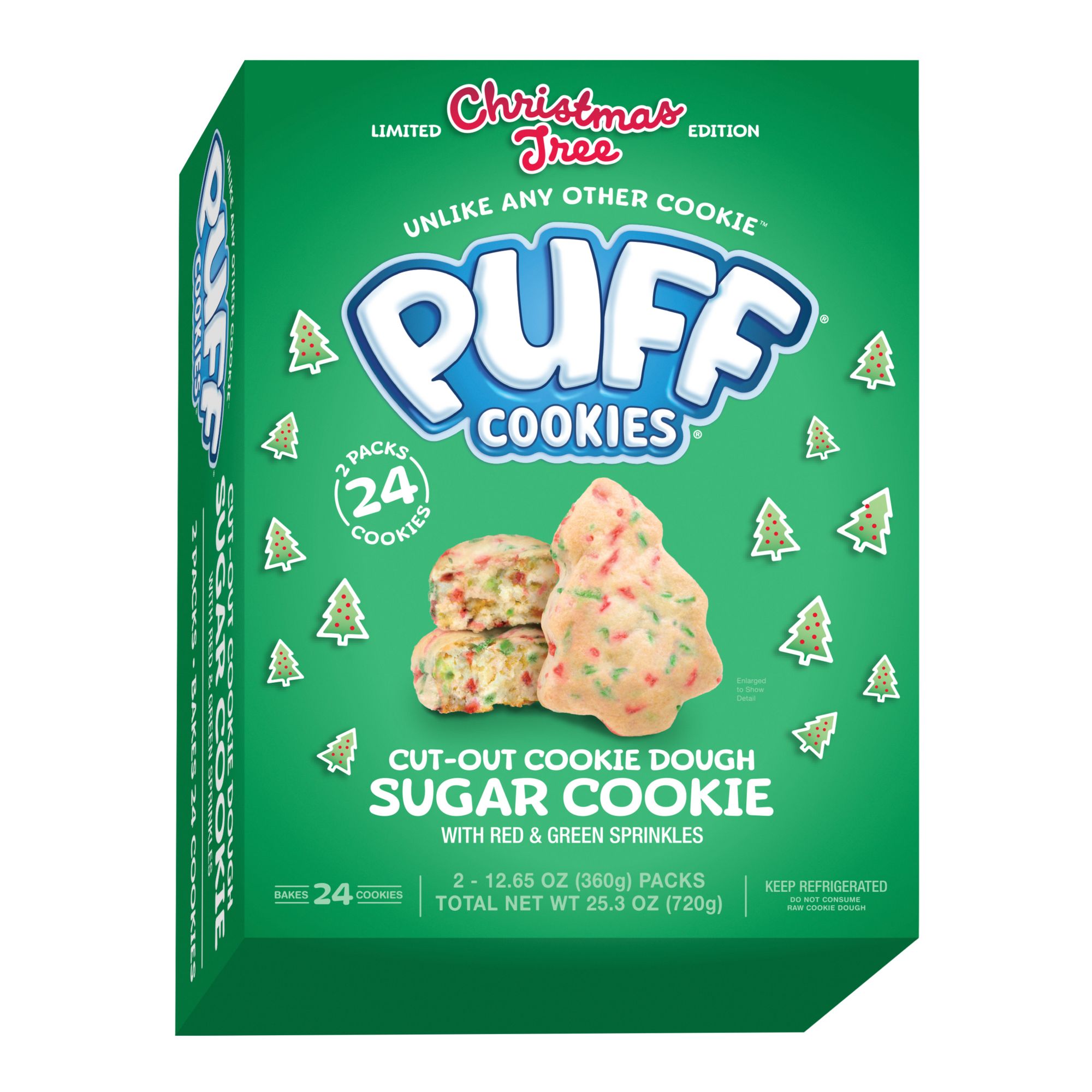 Puff Cookies Cookie Dough Cut Out Christmas Tree Sugar Cookies, Makes 24 Cookies, Ready to Bake, 24 ct.
