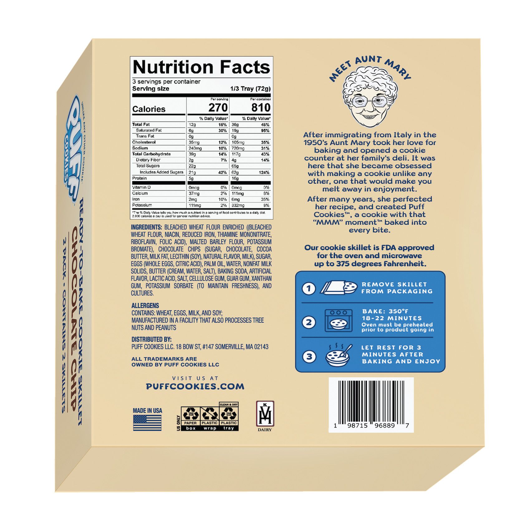 Puff Cookies Cookie Dough, Ready to Bake Skillet, Chocolate Chip, Bakes 2 Cookie Skillets, 2 pk./7.5 oz.