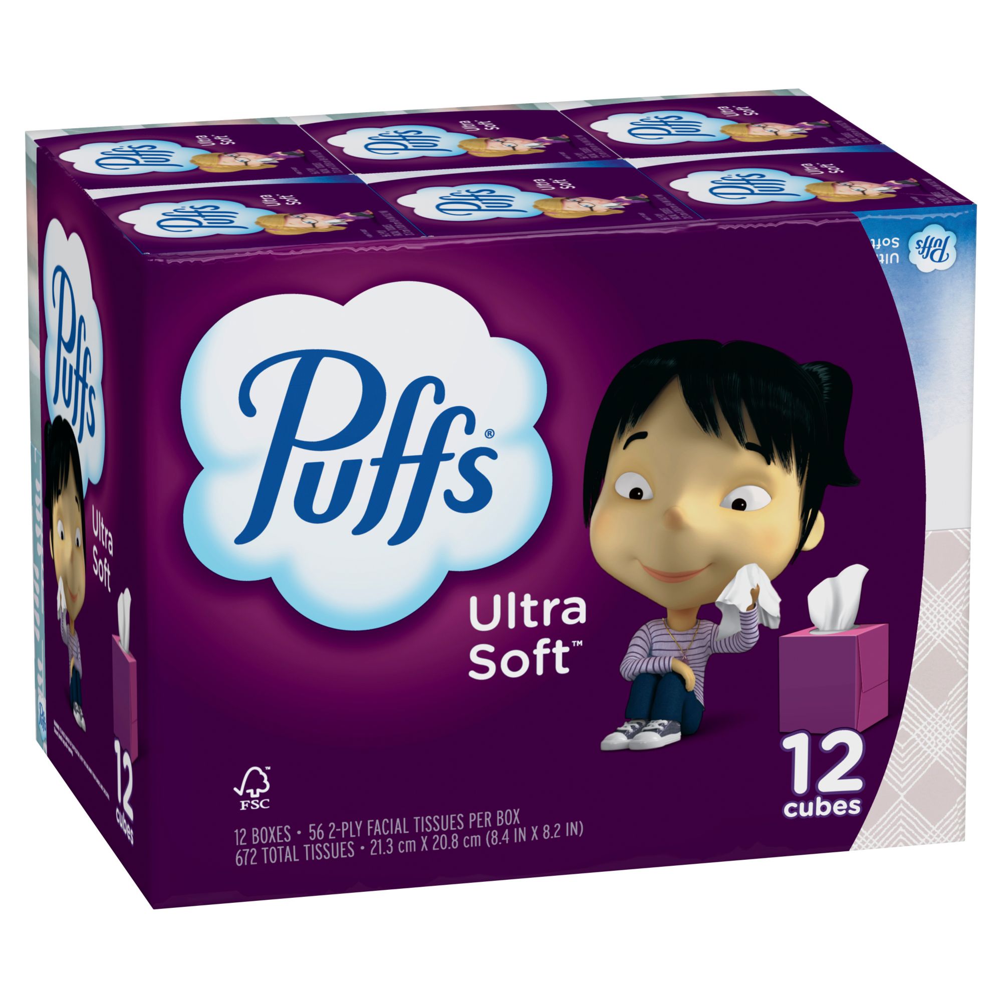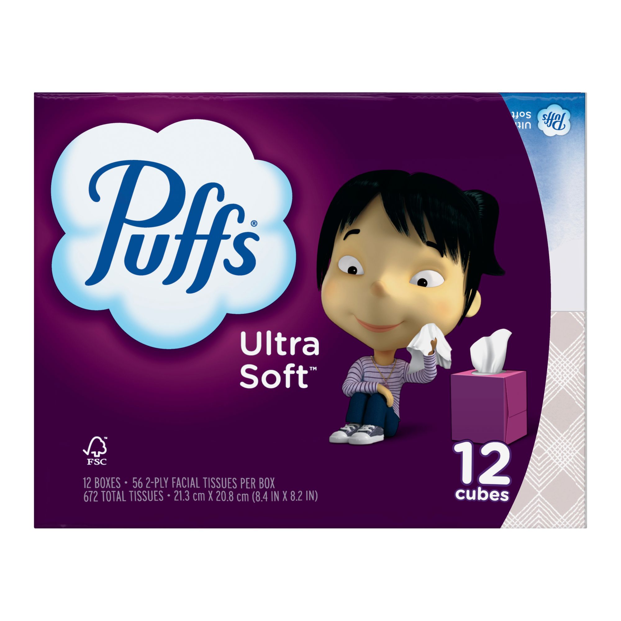 Pack includes 12 Cubes (56 Tissues Per Cube) of Puffs Ultra Soft Facial Tissues