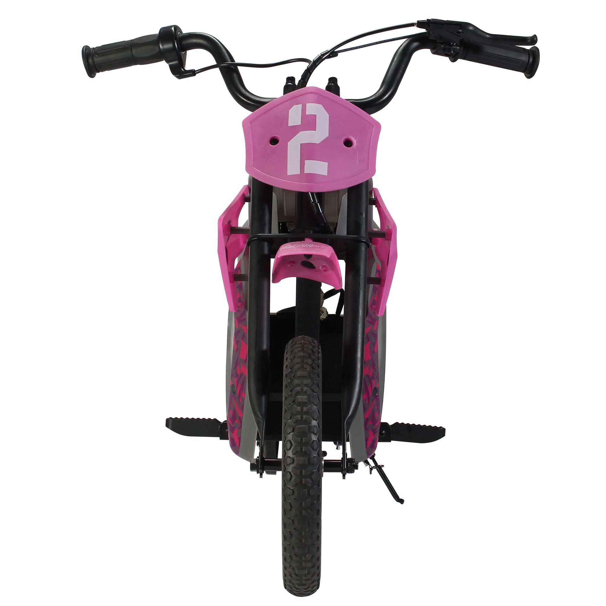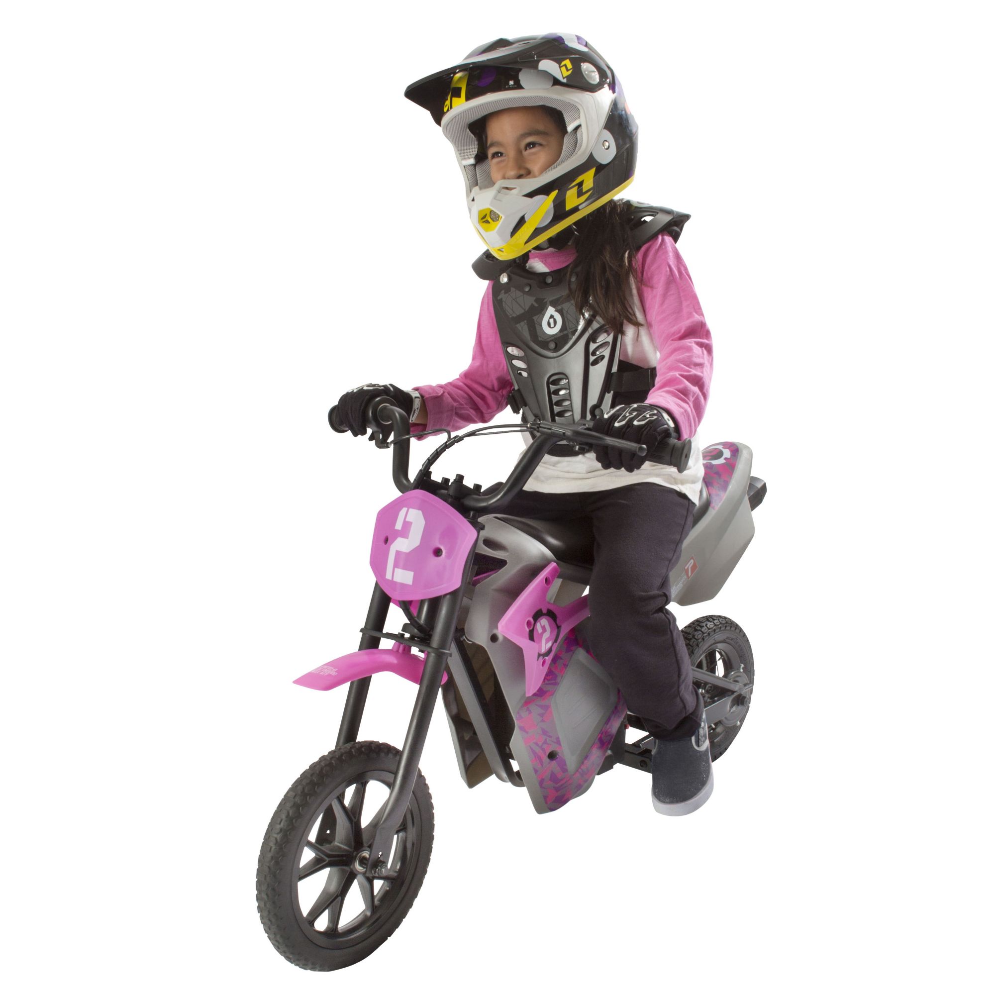 Moto-inspired Instant Throttle Response (ITR) twist throttle and hand brake 24V rechargeable battery system for a ride time of up to 40-minutes 100W chain driven motor pushes this scooter up to 10mph Heavy-duty steel constructed front fork, handlebars, and internal frame Puncture proof knobby front tire and air filled rubber rear tire to absorb the bumps Ages 8+ Maximum weight capacity is up to 120 lbs. Includes motorcycle and wall charger
