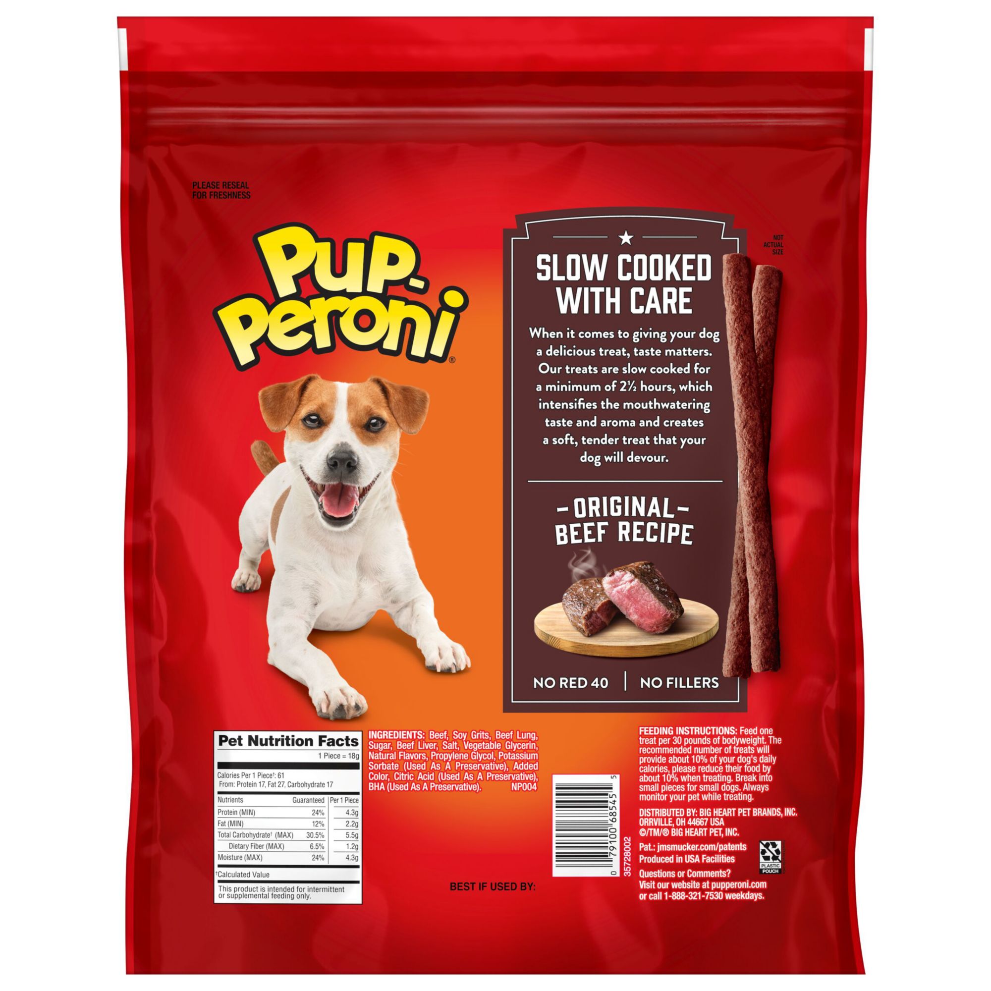 No Red 40 and no fillers Contains one (1) 46 oz. bag of Pup-Peroni Original Beef Recipe soft dog treats