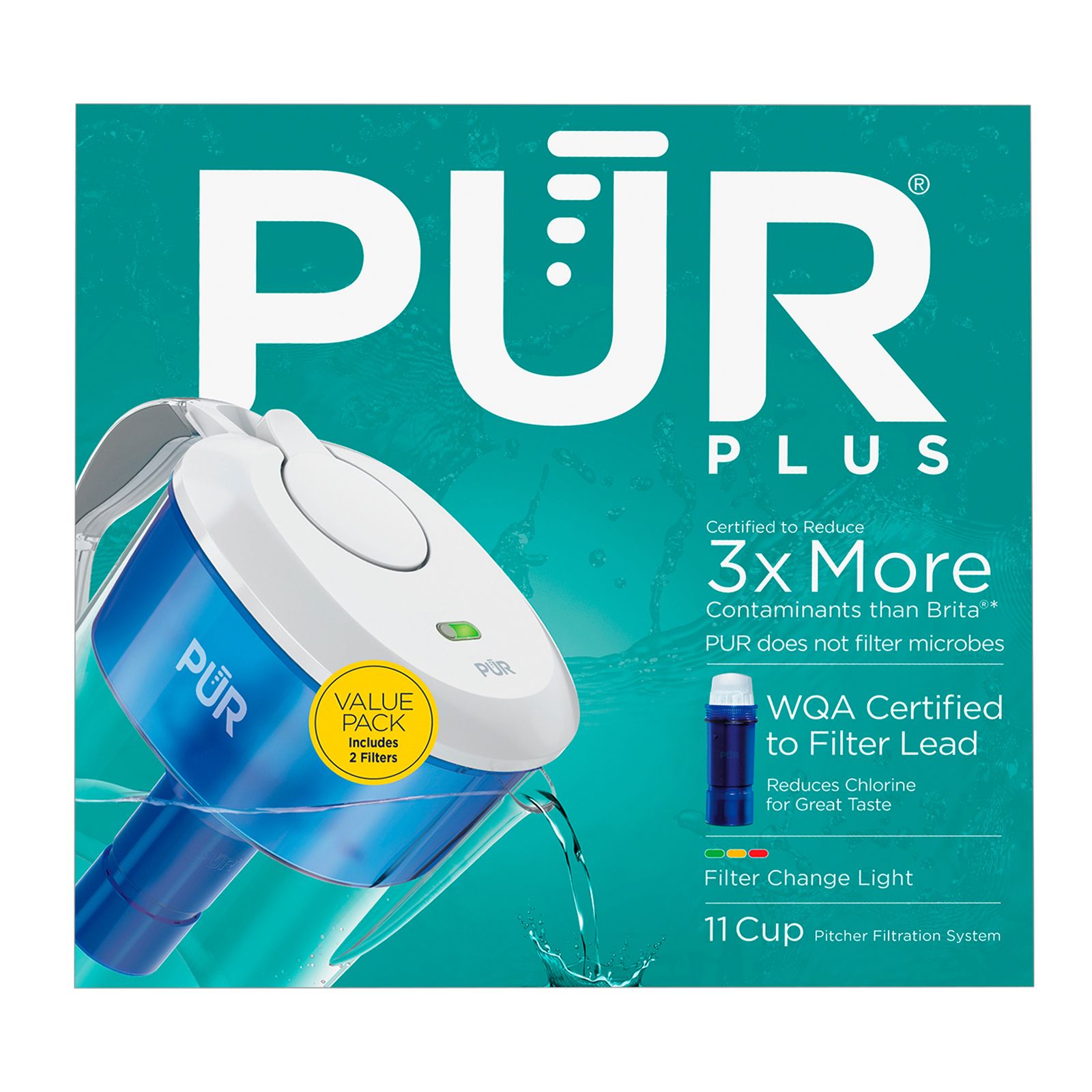 While tap water may look clean, lead can get into your water through leaching lead service lines, or from lead contained in household plumbing. It is certified to reduce lead (Based on Nielsen sales data for the 52 weeks ending 07/03/21.). WQA Certified to reduce lead. Reduces mercury and certain pesticides. Reduces chlorine (taste and odor) and more (PUR does not filter microbes.).