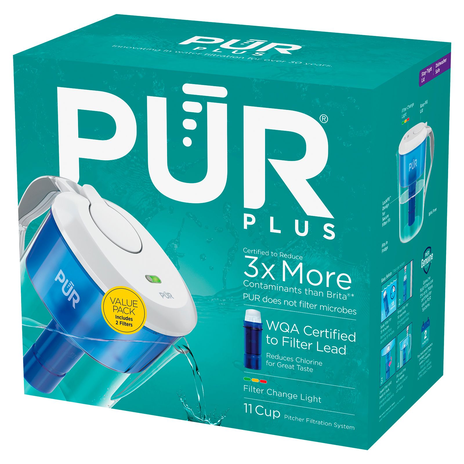 Dishwasher safe – only PUR Pitchers and Dispensers are dishwasher safe so you can prevent bacteria and grime build up