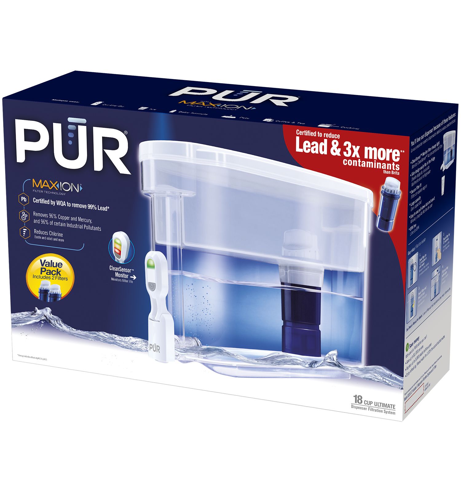 PUR Ultimate 18-Cup Water Dispenser with Lead Reduction Filter and 2 Bonus Lead Reduction Filters