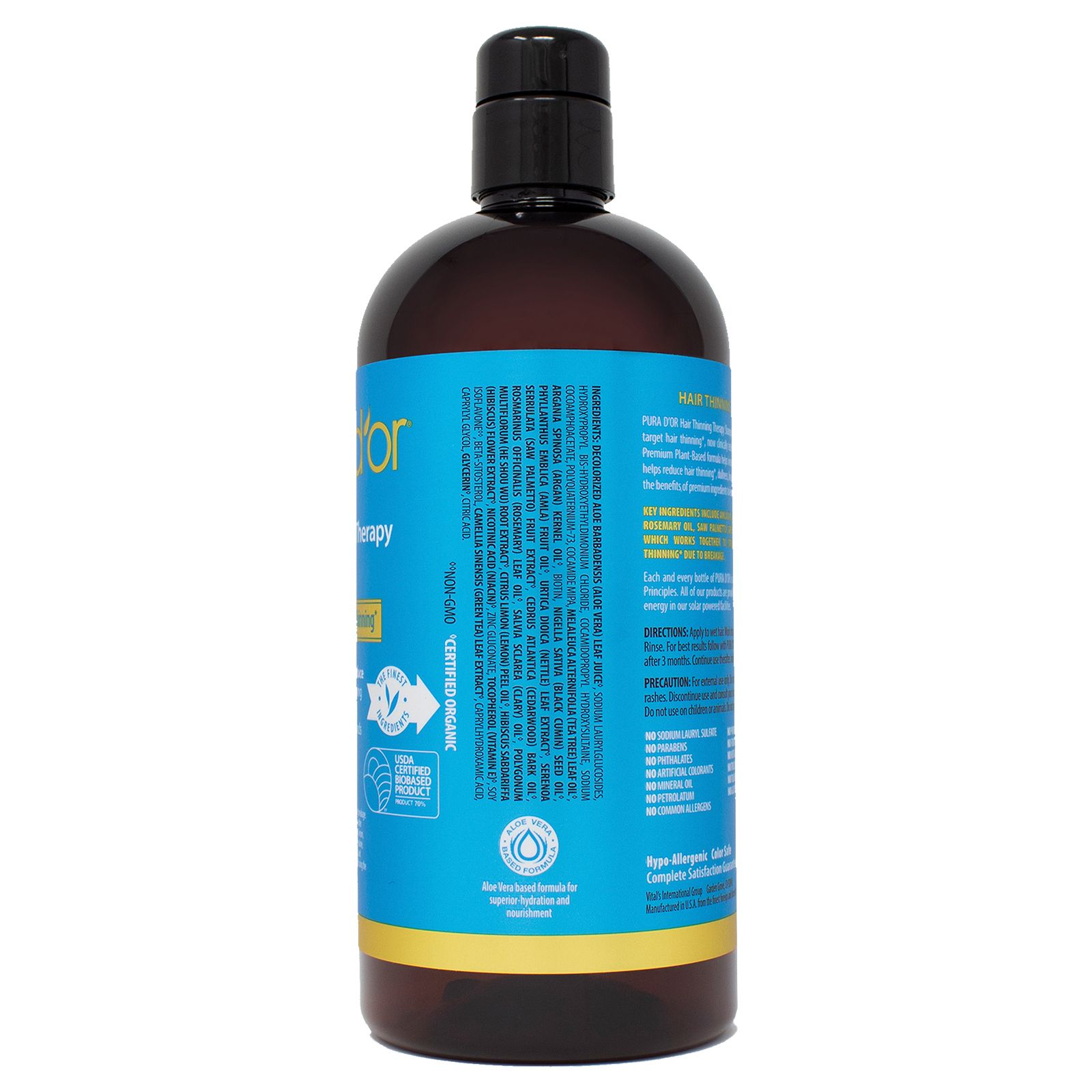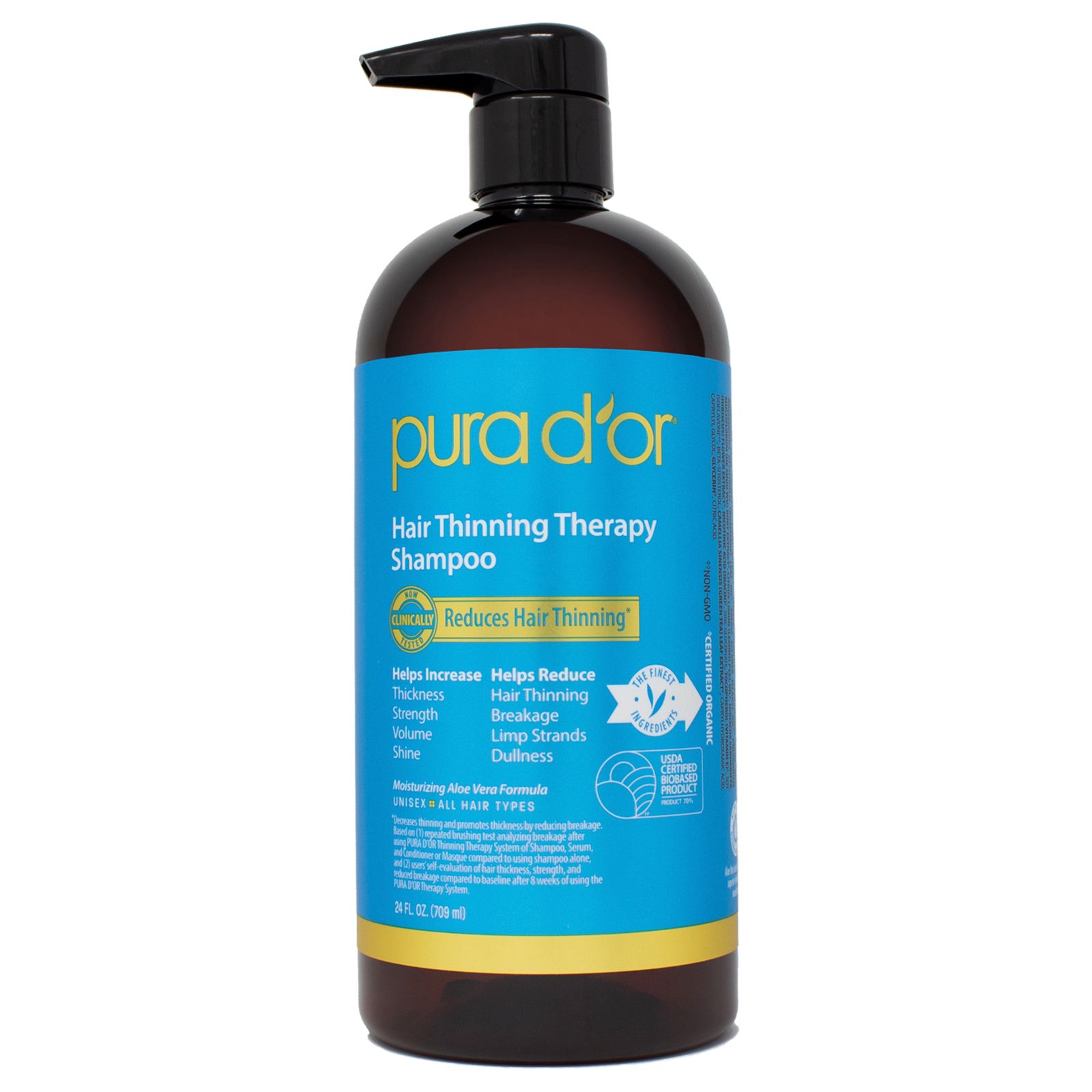 PURA D'OR Hair Thinning Therapy Shampoo is a clinically tested formula proven to help strengthen, minimize breakage and reduce hair thinning.* This exclusive blend of key active ingredients helps to improve volume, thickness, shine, split ends and a healthy looking scalp. Niacin, Biotin, Argan Oil, and other natural ingredients help to invigorate and purify the scalp, while encouraging strand strength and resiliency. Free from harsh chemicals, environmentally responsible, hypo-allergenic, vegan, and cruelty free.