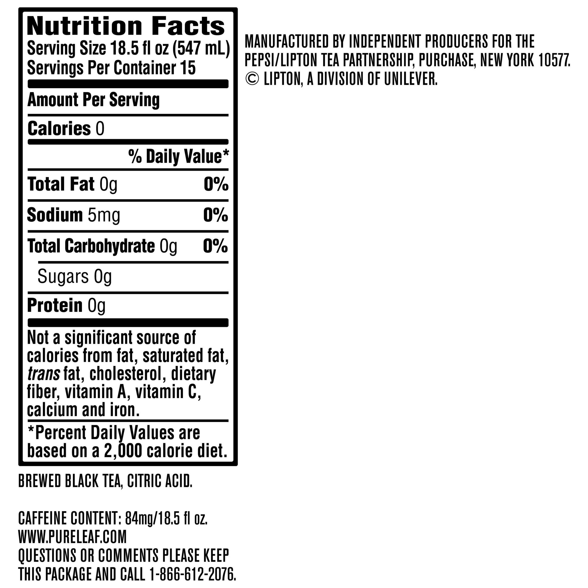 Pure Leaf Unsweetened Tea, 15 ct./18.5 fl. oz.