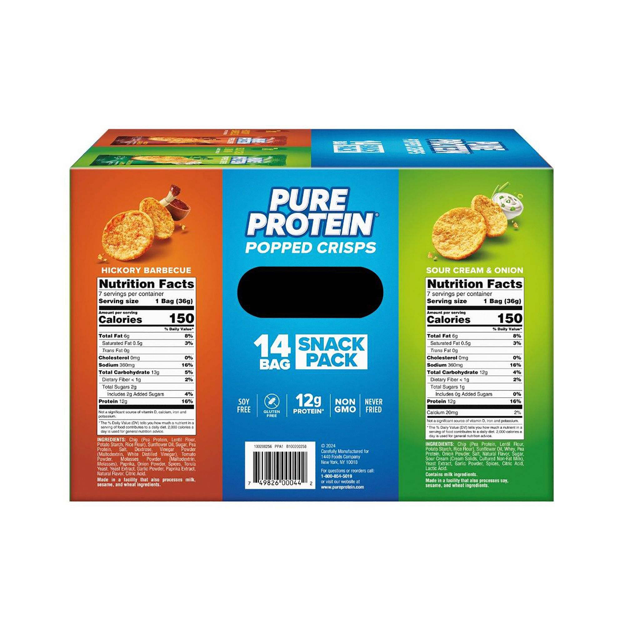 Pure Protein Popped Crisps Variety Pack, 12g Protein, Barbeque and Sour Cream & Onion, 14 ct./1.27 oz.