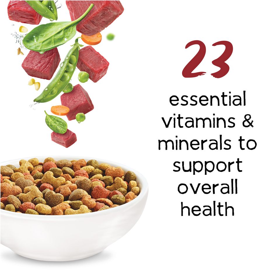 Make mealtime for your dog as tasty as it is nutritious with Purina Beneful Originals with Real Beef adult dry dog food. With real farm-raised beef as the first ingredient, these meaty bites deliver high-quality protein to support strong muscles. Whole grains and accents of real carrots, spinach and peas also help create a perfectly balanced meal with an irresistible taste for your faithful companion. The enticing mix of tender and crunchy kibble will add variety to his day and keep him coming back for more. Fill his stomach with wholesome ingredients and his heart with your love for a happy, healthy life together.