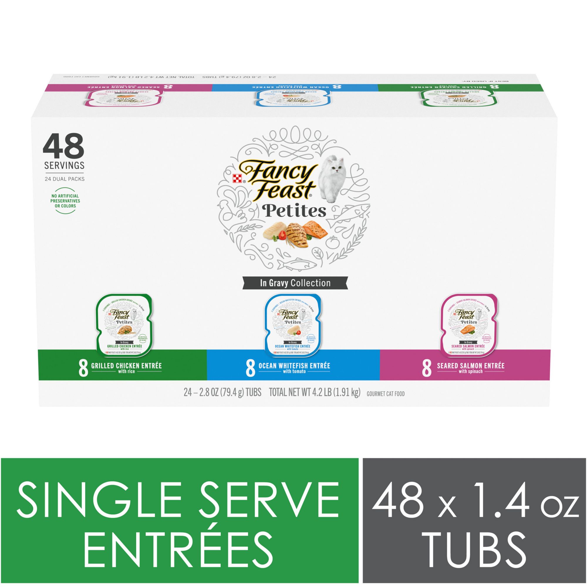 • Fancy Feast petites single-serve wet cat food in gravy delivers the perfect size servings