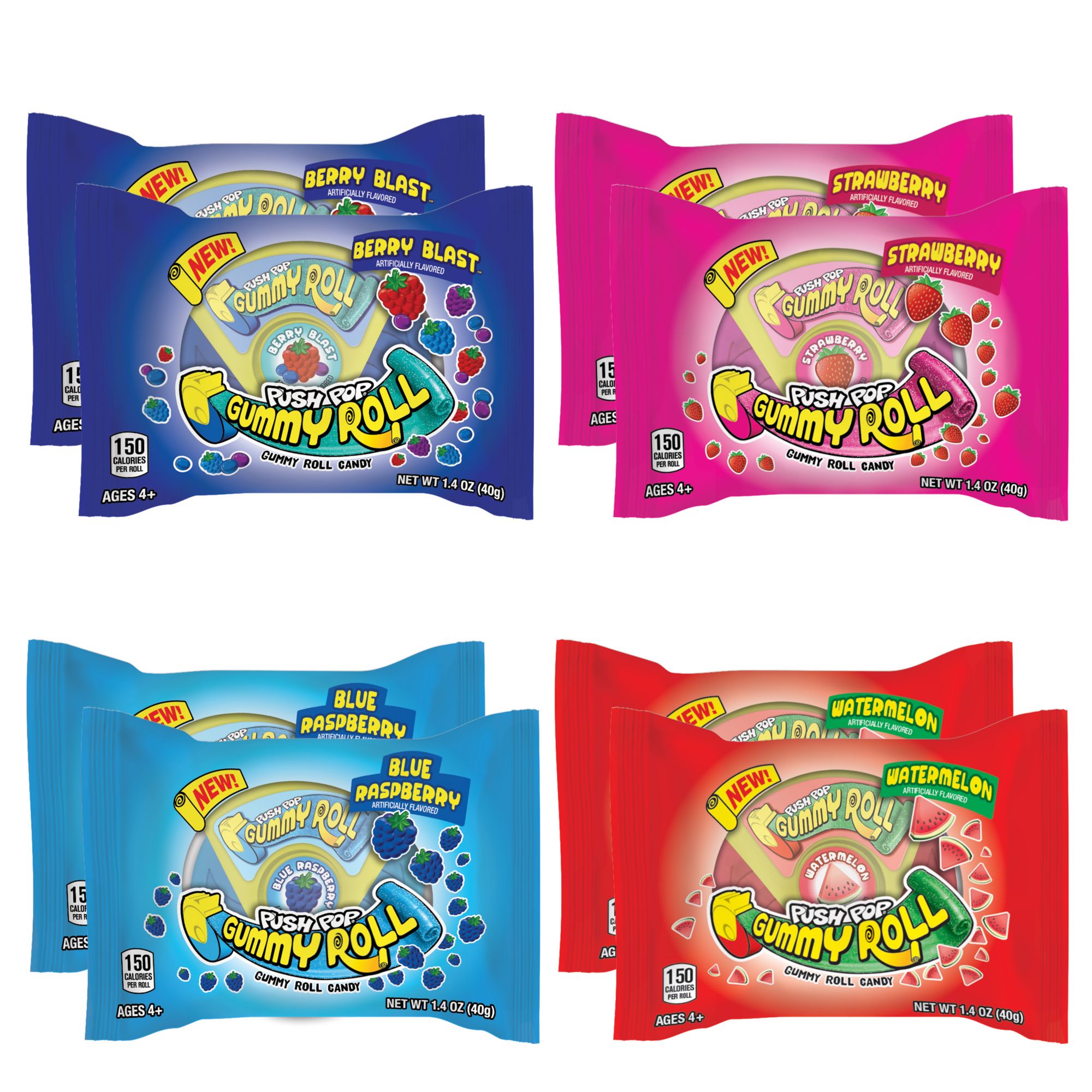 Push Pop Gummy Roll is the ultimate sweet gummy candy with a unique, easy-to-use dispenser for birthday parties and picnics. Kids love Push Pop, especially Push Pop Gummy Roll because of the deliciously sweet gummy roll with a light sour sprinkle in a portable dispenser that kids can enjoy now and save for later. It's a perfect candy gift for kids, ideal for sharing with family and friends during parties, as a sweet gummy party favor, or as part of a summer camp care package. These shelf-stable treats are also individually wrapped gummy candies for a fun and tasty birthday party goodie bag.