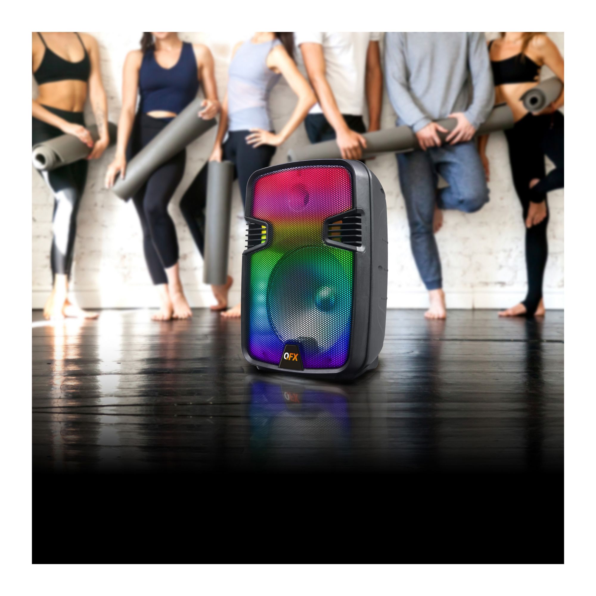 QFX 12" Rechargeable Portable Bluetooth Speaker with Liquid Motion Party Lights & TWS