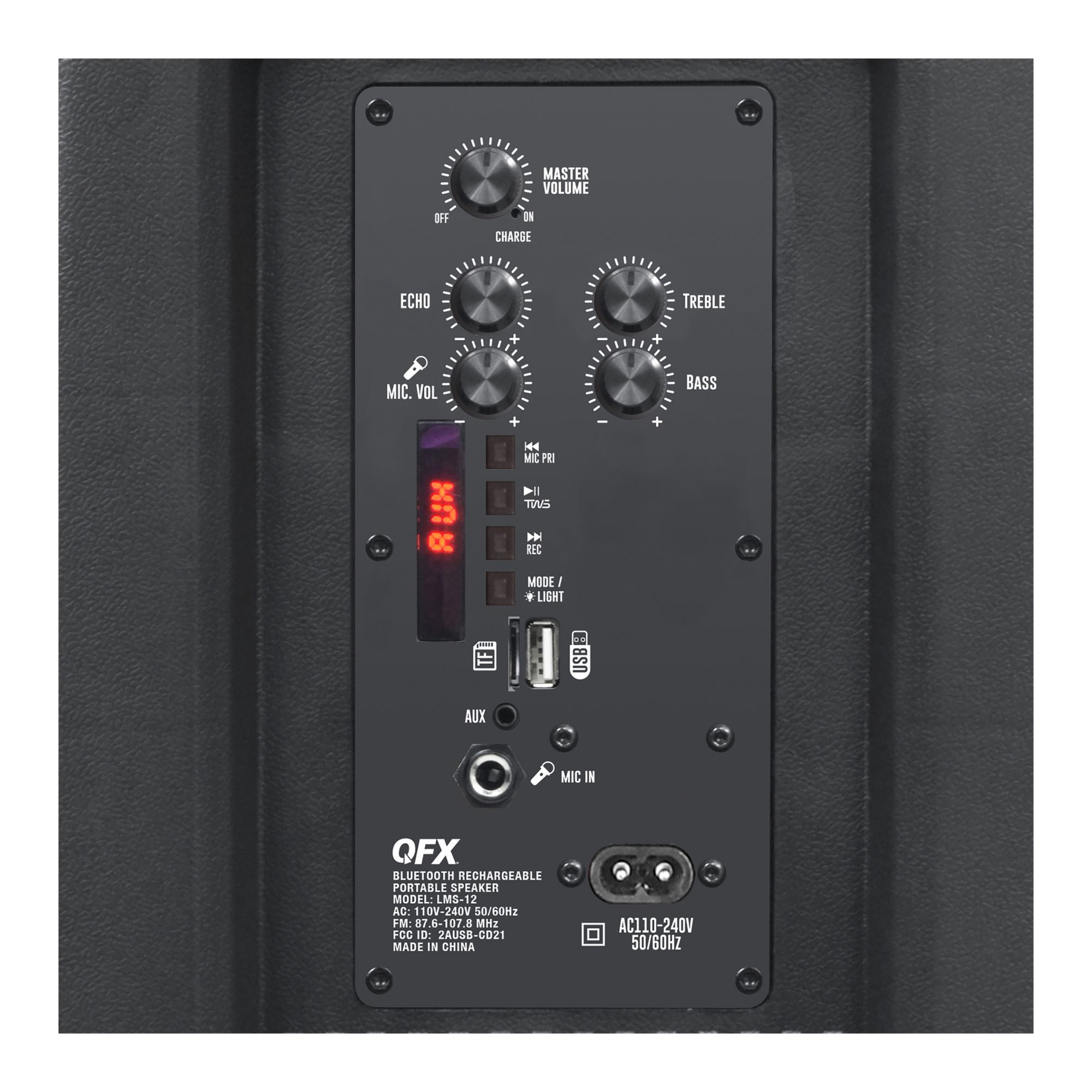 QFX's Portable Party Speaker LMS-12 has you covered for any occasion. This versatile Bluetooth speaker pumps out music or amplifies announcements. Once it's in place, it can stream music from a variety of sources: Wirelessly via Bluetooth-enabled devices, through USB and microSD card slots, or connected with a cable through the aux-in port. No matter what you're playing, the speaker's 12" woofer and amplifier ensure that everyone can hear clearly. The rechargeable battery lasts for 6-8 hours so you can stream music even in places without an outlet nearby. Includes TWS which allows you to pair two LMS-12s together wirelessly.