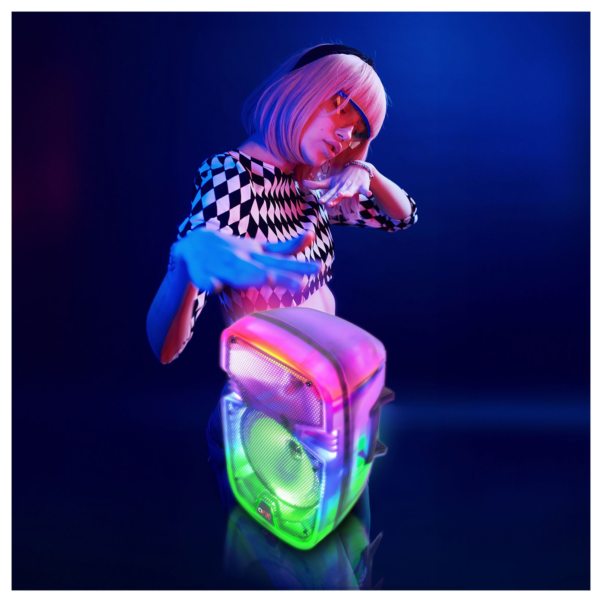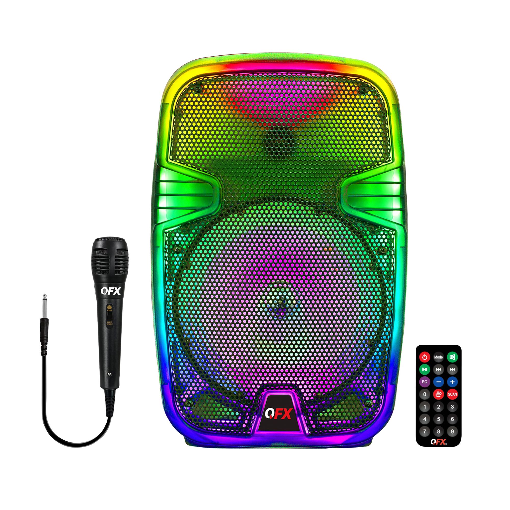 QFX 8" Translucent Portable Party Speaker With Rechargeable Battery and Wired Microphone