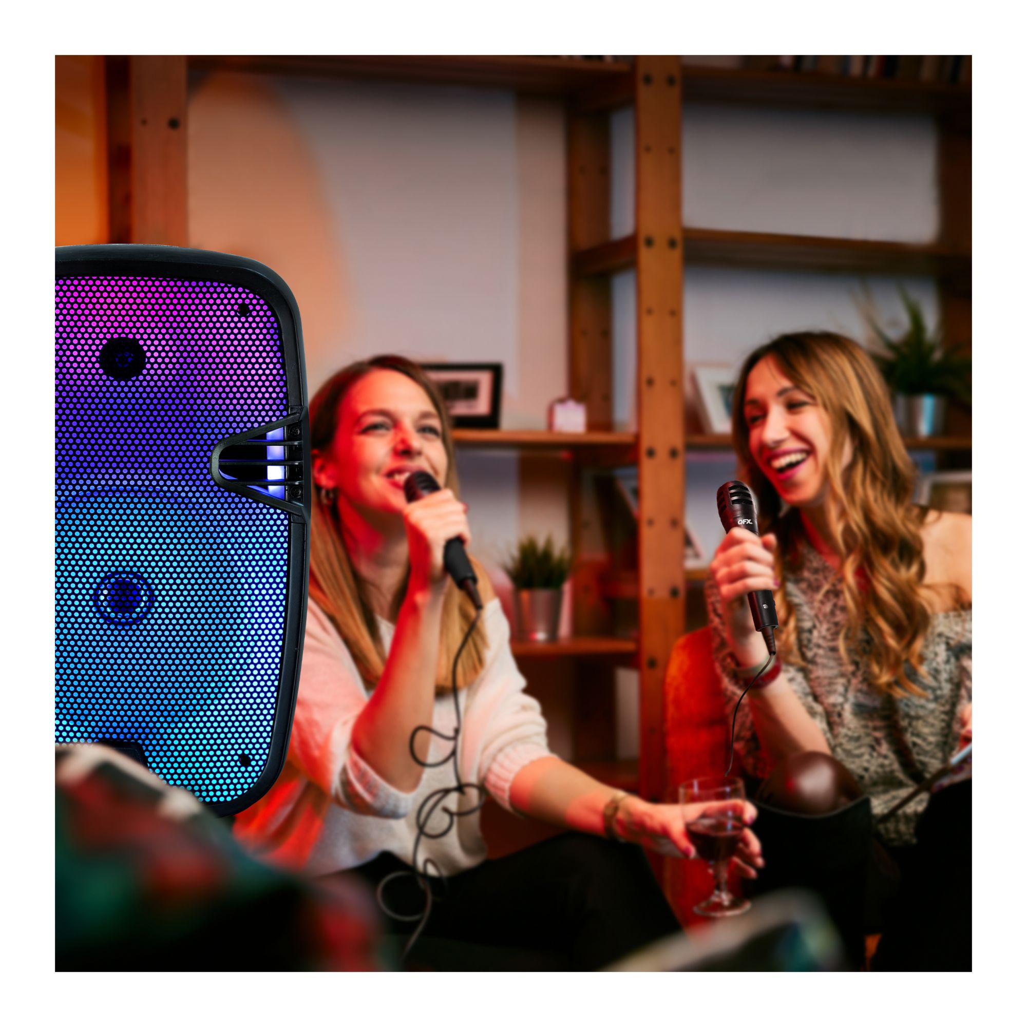 QFX LMS-8074 8" Portable Party Speaker with Liquid Motion Lights and Wired Microphone