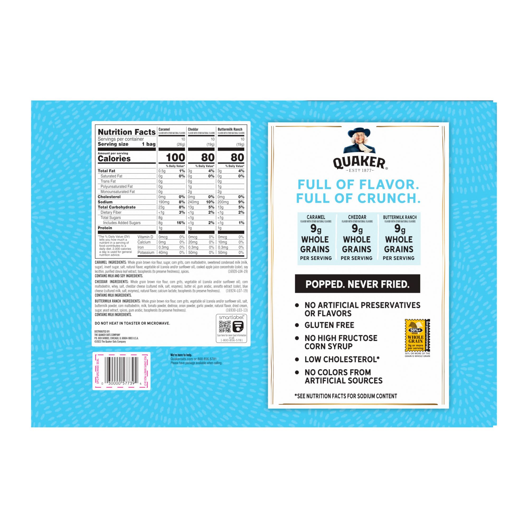 With so many crunchy ways to snack, you might not be able to pick just one. Quaker Rice Crisps are a great lunch time sidekick, after school snack or movie night munchie. This variety pack includes three different flavors you can't wait to get your hands on. No matter what the occasion from stocking the pantry, to the lunch box, or even a desk break, all you have to do is grab a pack and go.
