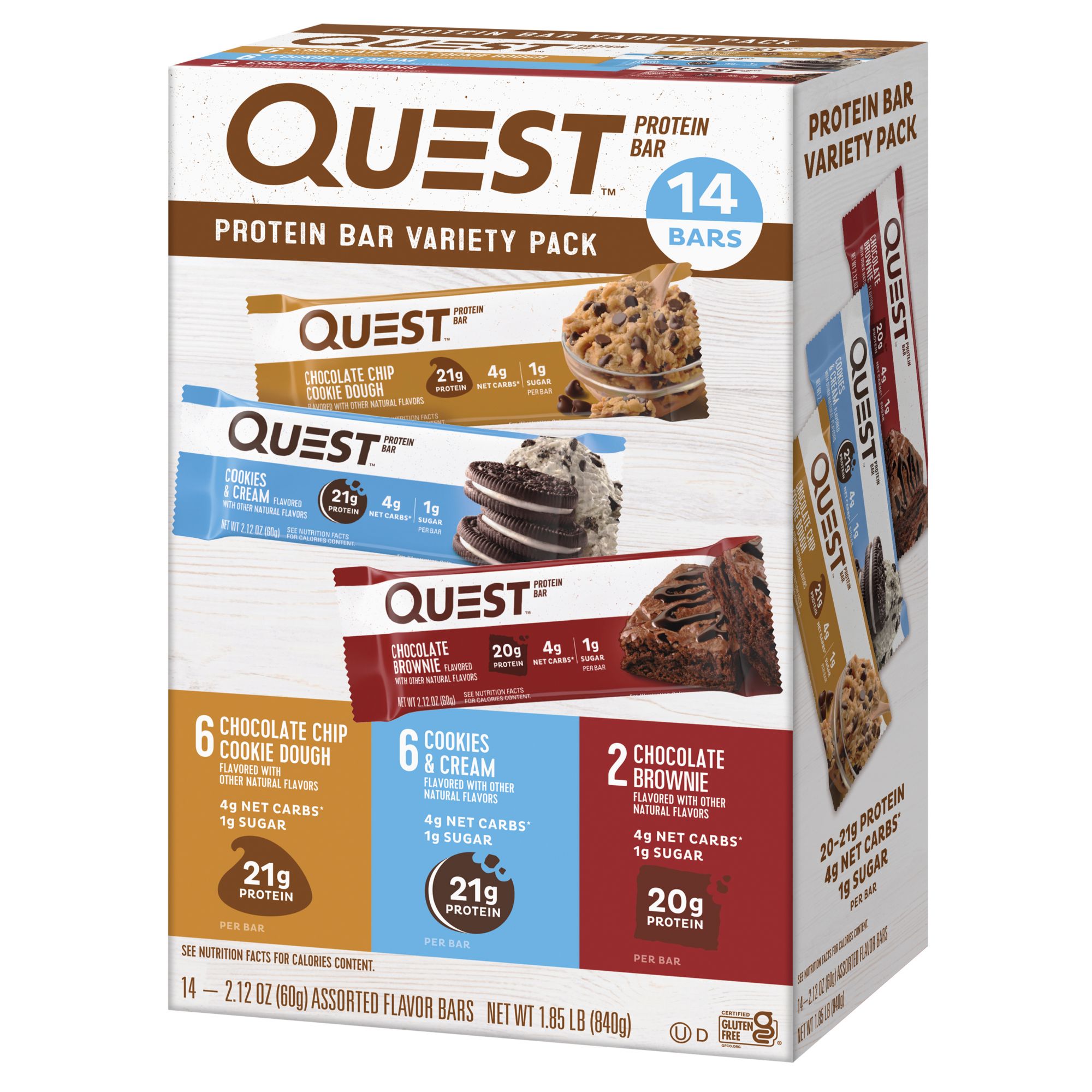 Includes variety pack of protein bars, 14 ct.