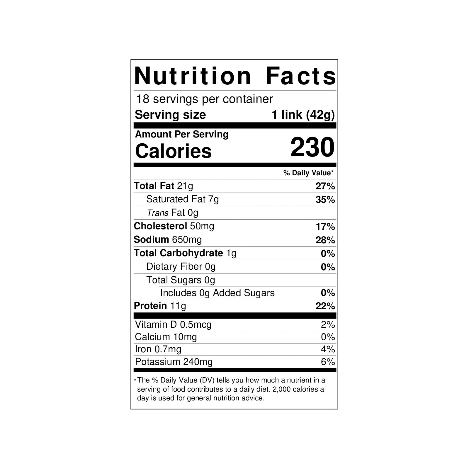 Ingredients Pork, Salt, Water, Paprika, Garlic Powder, Lactic Acid Starter Culture, Spices, Oleoresin Paprika and collagen casing.