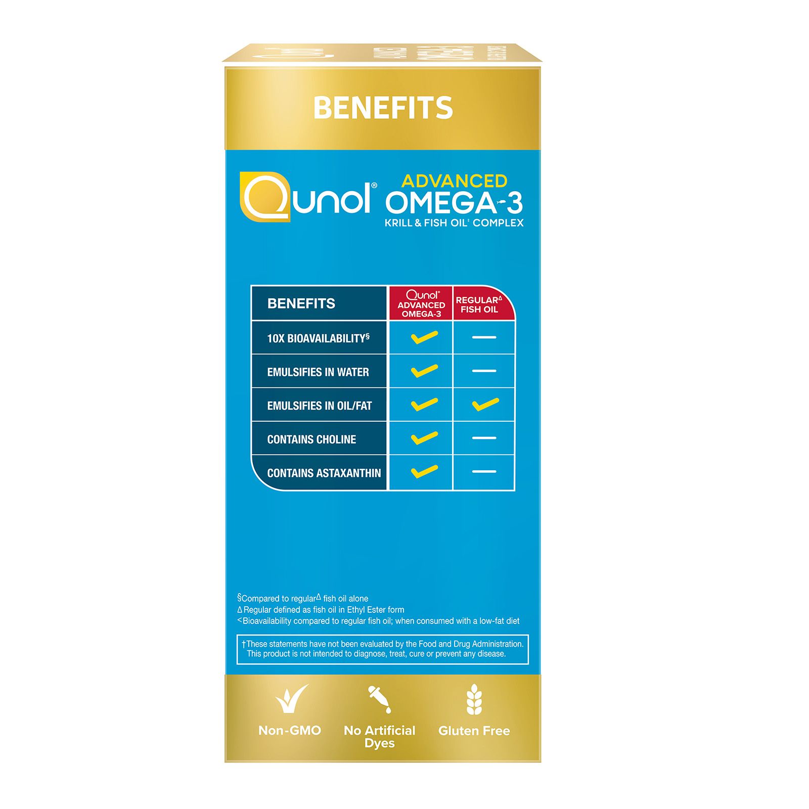 10x better bioavailability: Qunol advanced omega-3 uses phospholipid micelle technology which allows it to incorporate more efficiently into your digestive system, delivering up to 10x better bioavailability of EPA & DHA