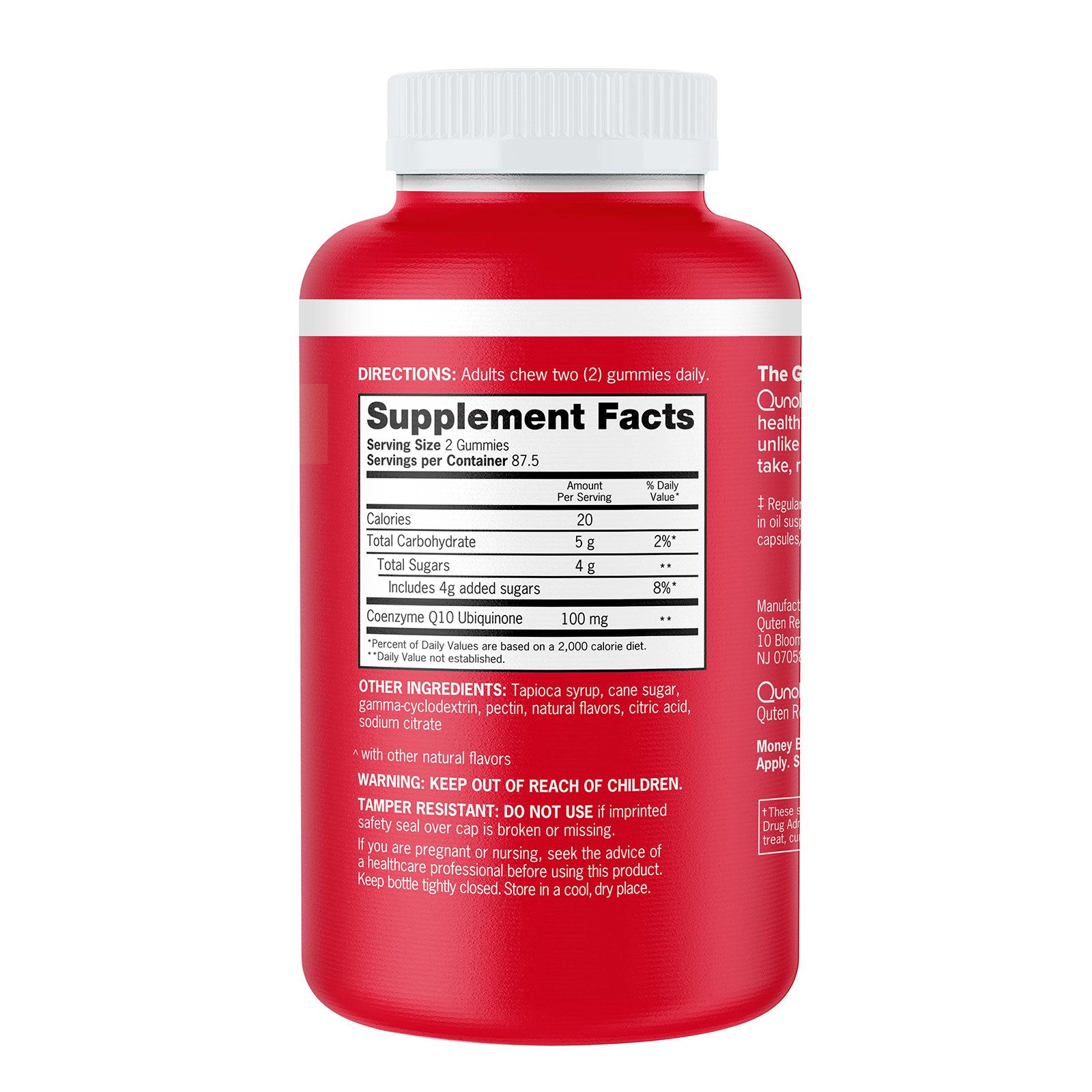 Qunol CoQ10 Gummies are a delicious alternative to pills. They have 100mg of CoQ10 inconvenient, chewable gummies with a delicious orange flavor.