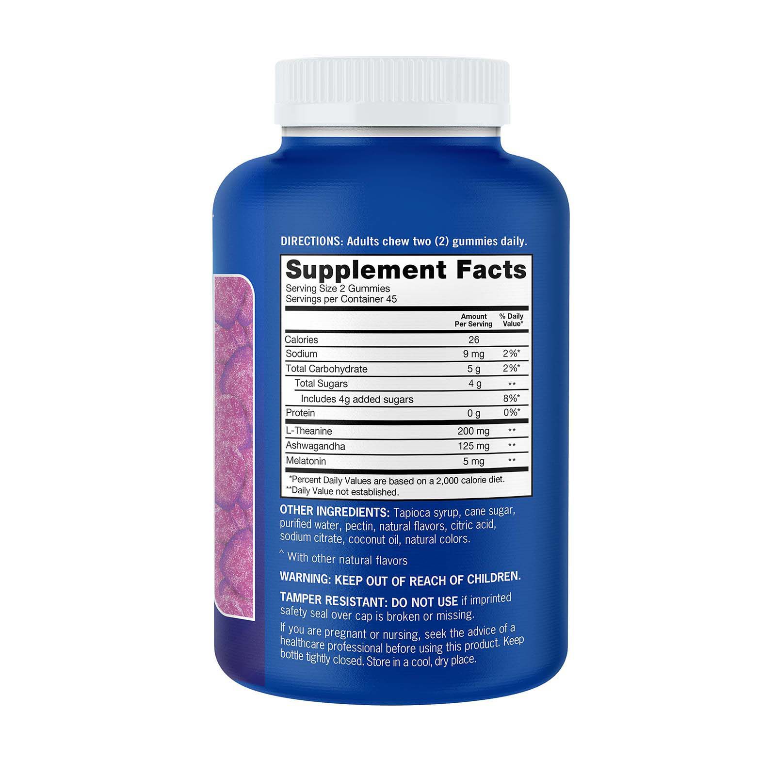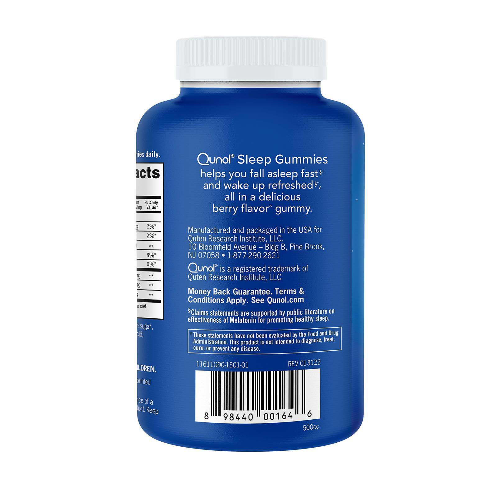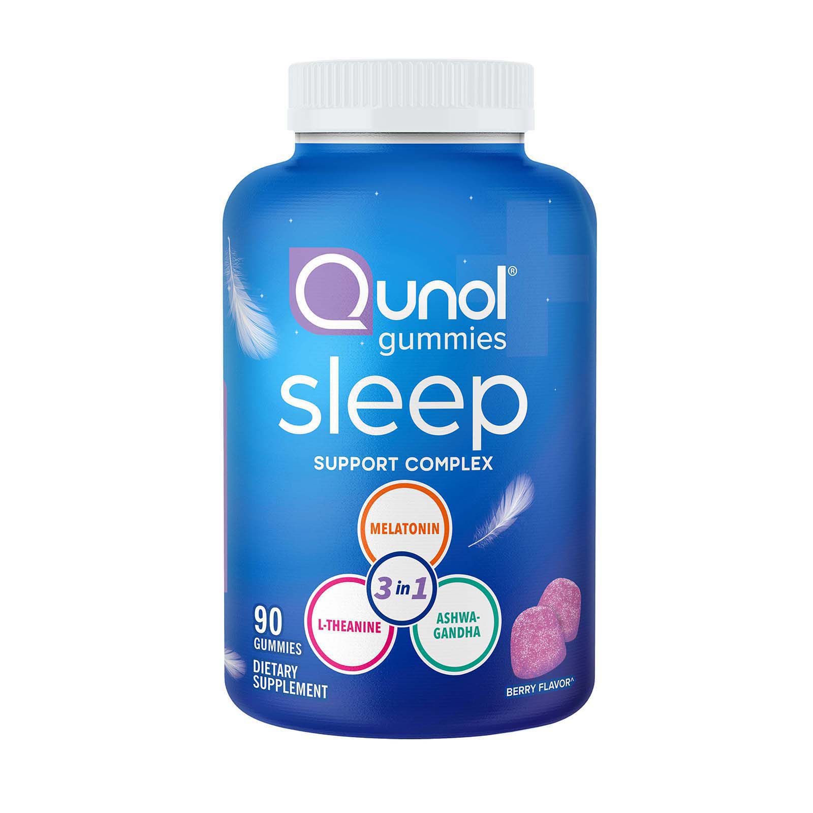Five ingredients in one Melatonin - time released Gaba - relax Ashwagandha - well-being L-Theanine - soothing Valerian root - tranquility Fall asleep faster Stay asleep longer Wake up refreshed Includes Qunol sleep support 90 ct.