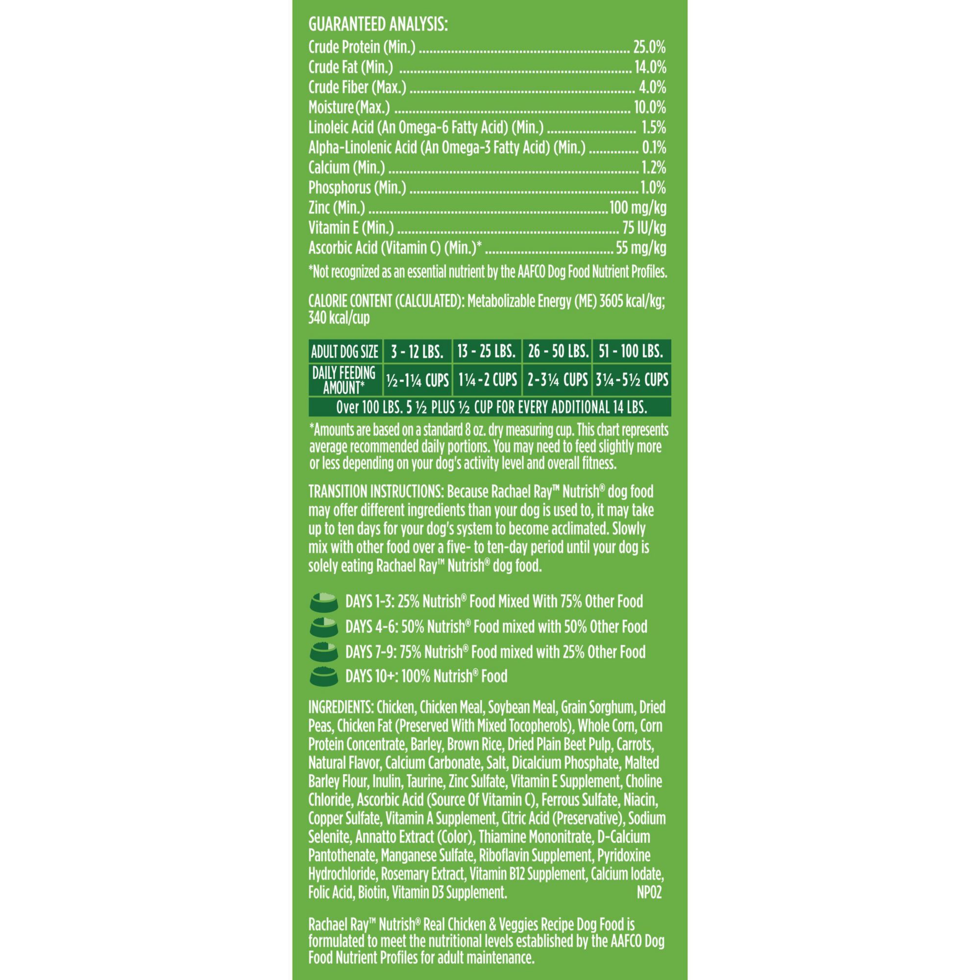 Rachael Ray Nutrish Real Chicken & Veggies Recipe dry dog food is made with simple, natural ingredients. Real American farm-raised chicken is always the primary ingredient, combined with wholesome vegetables and added vitamins and minerals.