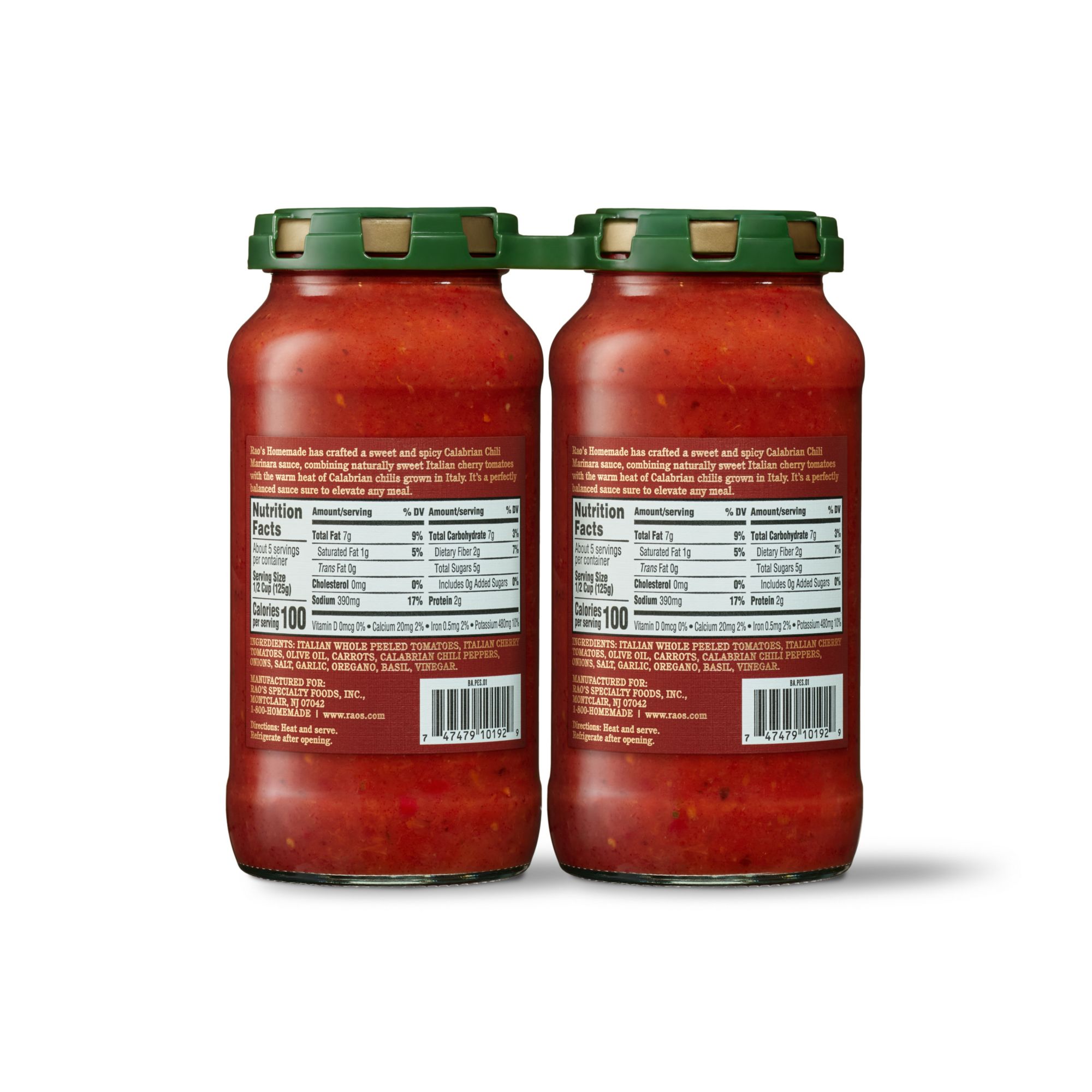Rao's Homemade has crafted a sweet and spicy Calabrian Chili Marinara sauce, combining naturally sweet Italian cherry tomatoes with the warm heat of Calabrian chilis grown in Italy. It's a perfectly balanced sauce sure to elevate any meal.