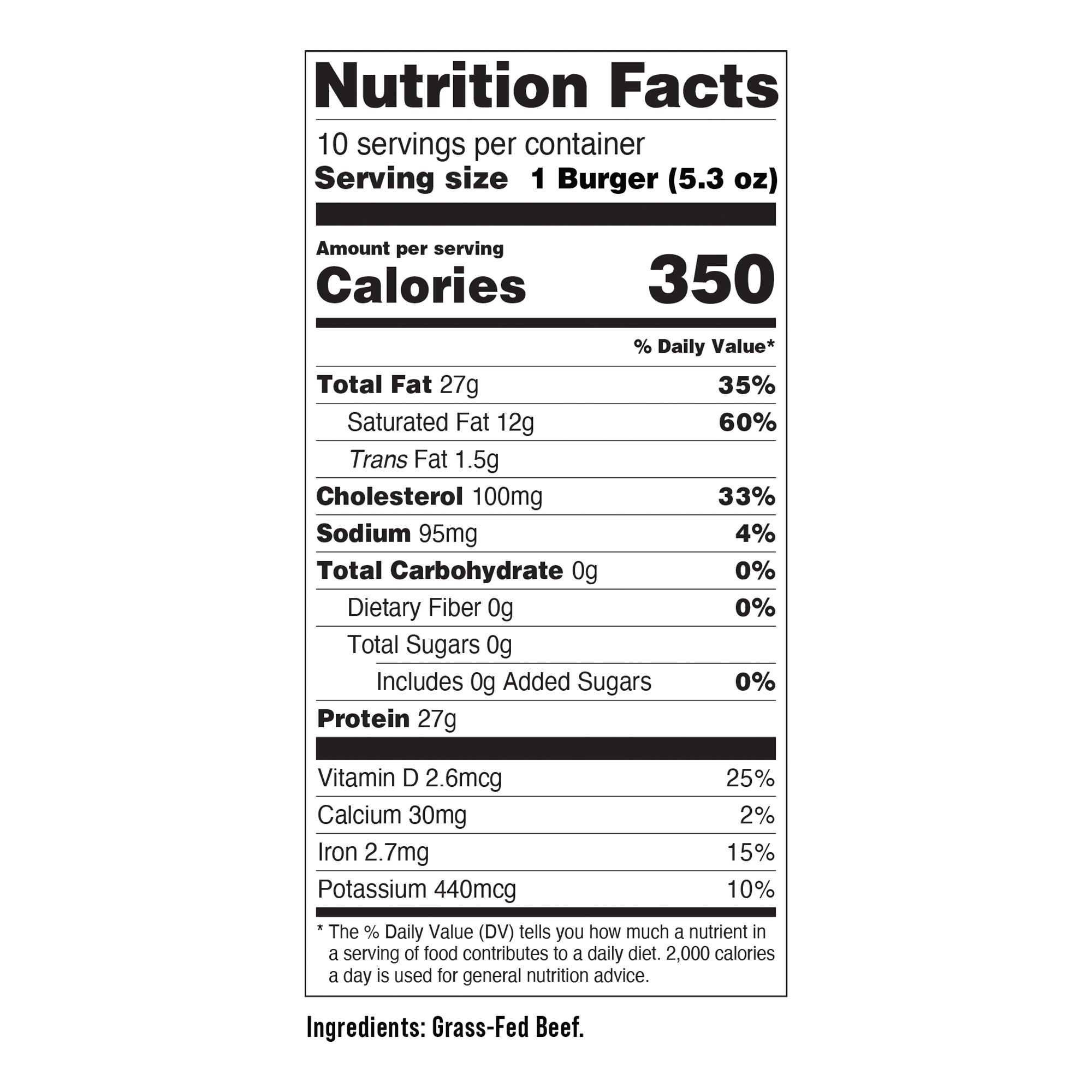A leaner, meaner burger – our 100% Grass-Fed Burgers have no antibiotics, steroids, and added hormones. They’re the perfect modern twist on a classic burger. Filled with all the beefy flavor you crave, but a little less heavy than their grain-finished counterparts – there’s never a need to compromise on flavor.