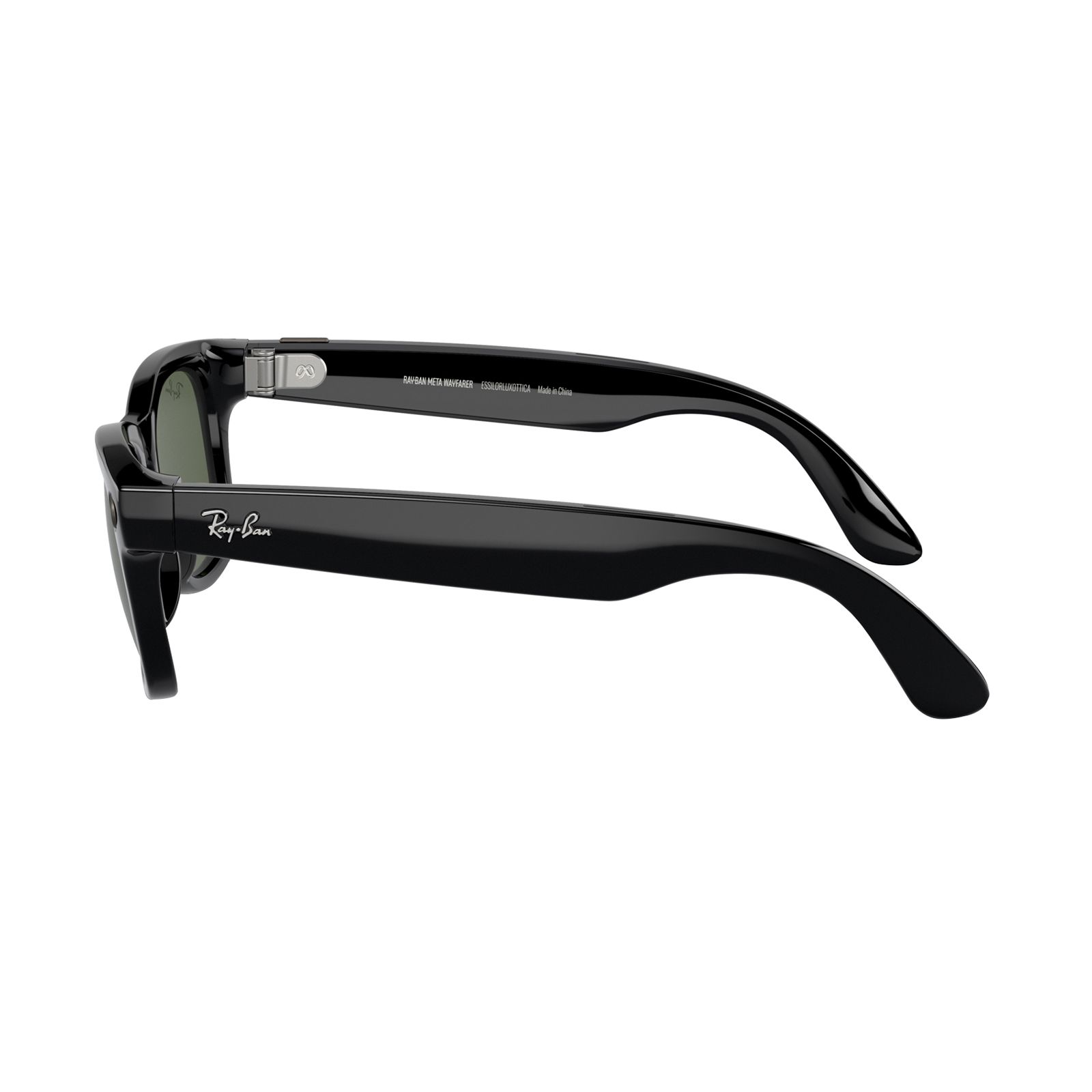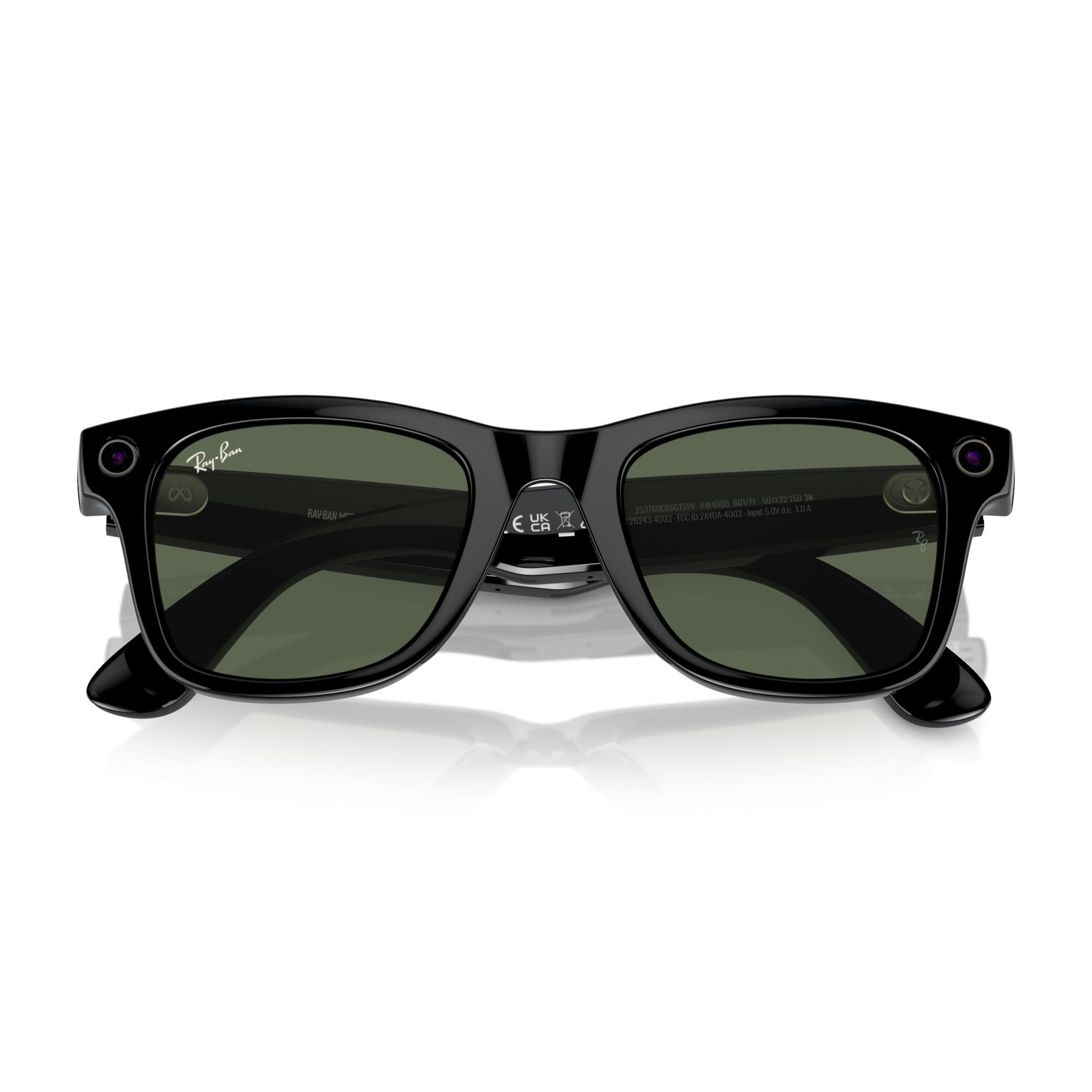 Ray-Ban Meta ORW4006 Wayfarer Square Shiny Black G15 Green Lens. Iconic style meets Meta Ai. Move effortlessly through life with Ray-Ban Meta glasses. Capture photos and videos, listen to music, make hands-free calls, or ask Meta AI questions on the go. Meta AI. Get to know your world with Meta AI. Ask questions and receive real-time answers, like when to catch the sunset or hands-free cooking tips. Video calling. Instantly flip between your phone’s camera and the hands-free pov camera on your glasses, giving the person you’re calling a whole new view. 1080p+ video resolution at 30 fps. Built-in HD camera. Capture exactly what you see and hear with an upgraded ultra-wide 12 MP camera and five-mic system. Livestream it on Facebook and Instagram. Live translation. With live translation, you can hear translations in real time between French, Italian, Spanish, and English, no wi-fi needed. Open-ear audio. Listen to music and more with discreet open-ear speakers that deliver rich, quality audio without blocking the ambient noises around you. Calling and messaging. Connecting is easy with voice commands that let you make calls and send messages without having to take out your phone. Livestream to social. Share your pov with the world by livestreaming directly from your glasses to Instagram and Facebook. Versatile lens options. Choose from a wide range of high-performance lenses designed to match your style. No matter the occasion, feel confident with glasses that have clarity, comfort, and protection. Accessibility features. Ray-Ban Meta glasses provide helpful utility to those with reduced vision, hearing, or mobility by offering the ability to perform tasks that typically require a phone, hands-free. Make an audio or video call, send a text message, or take a photo using your voice. Some audio cues are also delivered visually, through light indications on the inside of the frames. For those with reduced vision, prescription lenses are available. You can also use Meta AI to hear detailed descriptions of the world around you or connect with the Be My Eyes network to get assistance from a sighted volunteer. Meta AI app. Set up and manage your glasses, import and share media, interact with your personalized Meta AI assistant, and more. This app is required to support your glasses experience. Battery life. A fully charged pair of Ray-Ban Meta glasses can last up to four hours with moderate use, including capturing and syncing up to 100 videos or 500 photos. Plus, each pair of Ray-Ban Meta glasses comes with a charging case that can provide up to 32 hours of charging on the go, so you can flow through your day with ease. Memory has 500+ photos (3 frame burst)and 100+ videos (30s). (3 frame burst)32GB Meta AI is only available in select countries and languages.