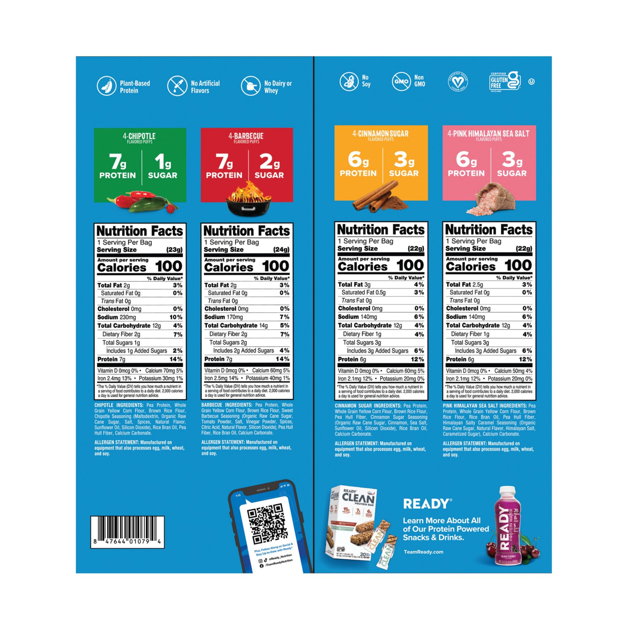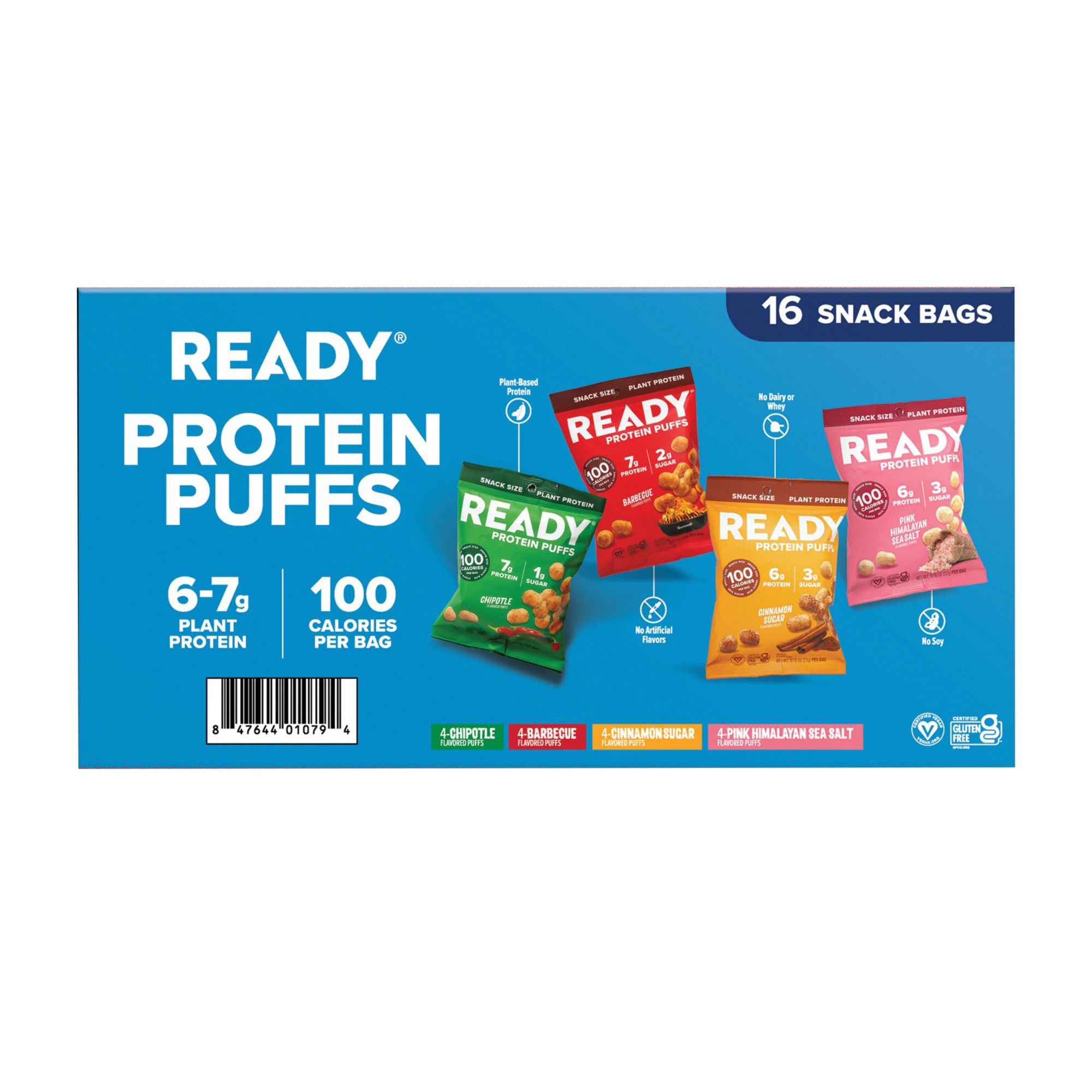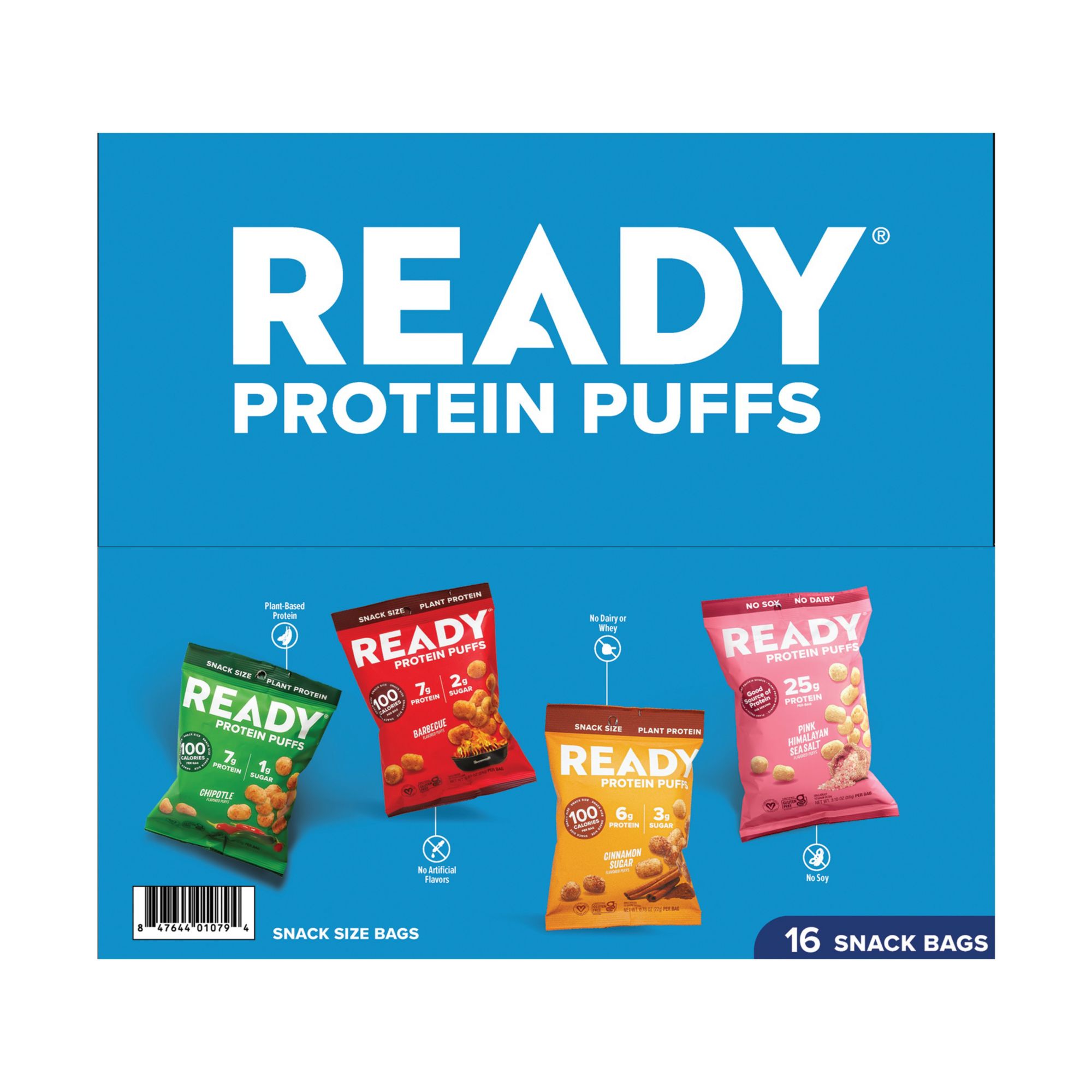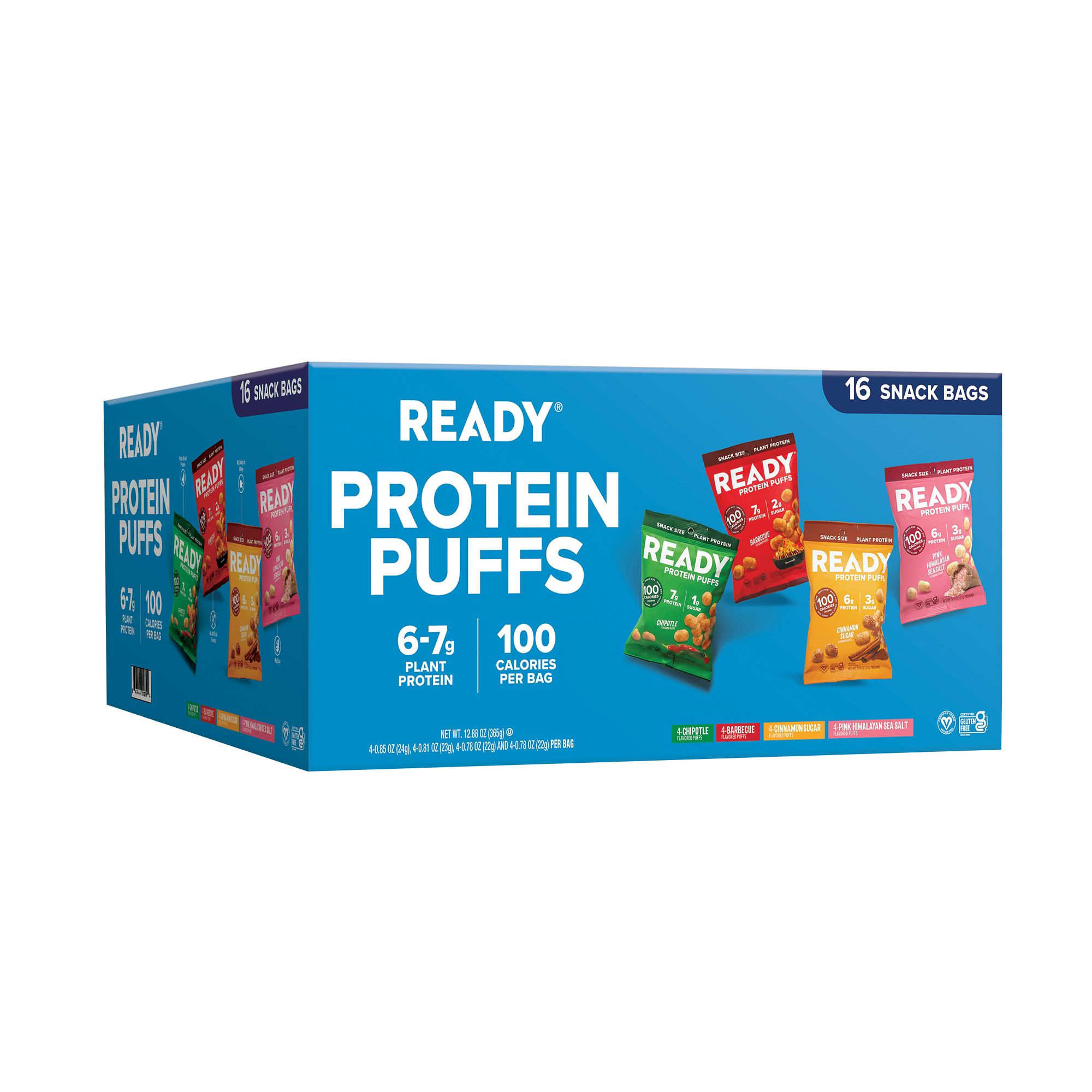 Ready Protein Puffs, Variety Pack, 6-7g Protein, 100 Calorie Snack Bags, 16 ct.