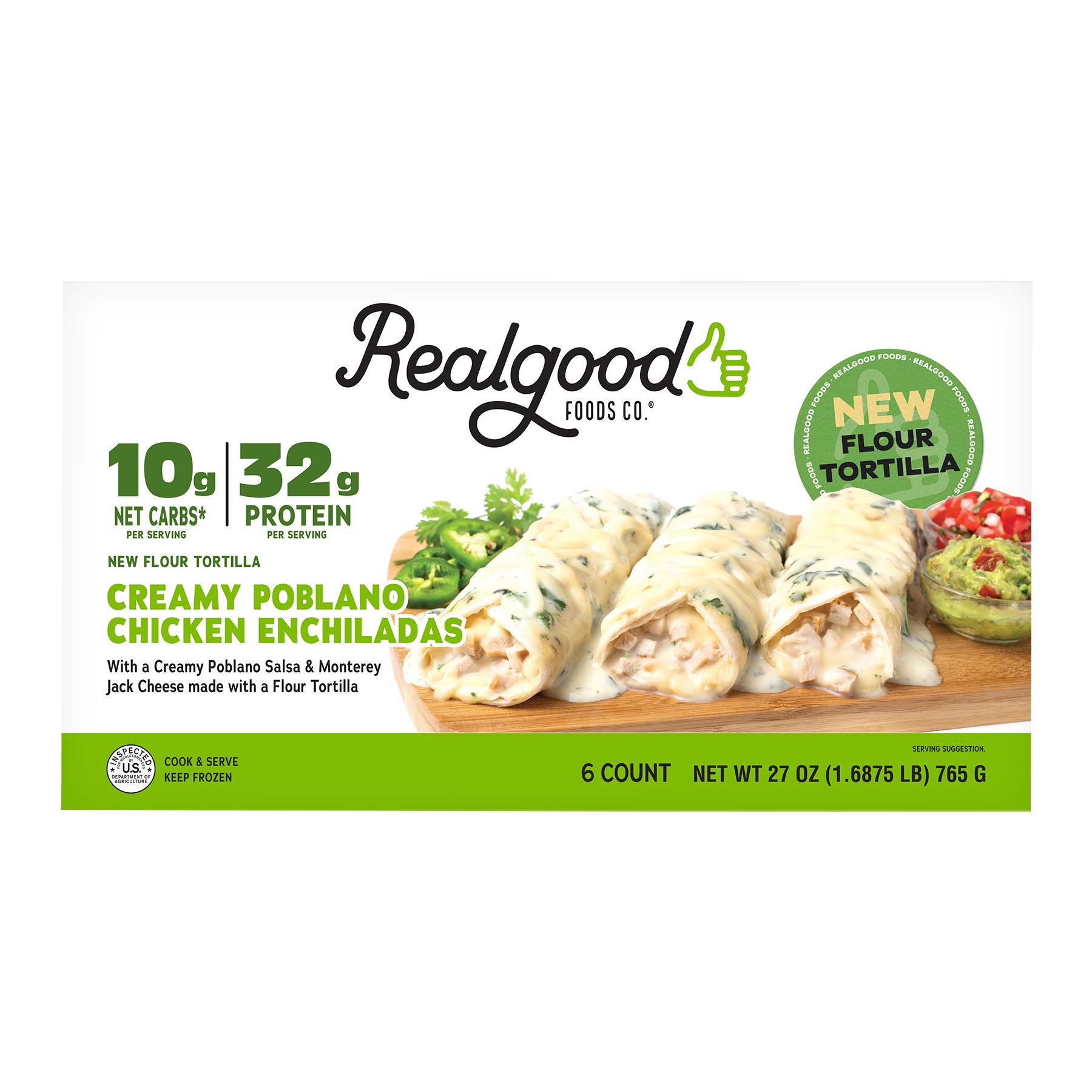 Real Good Foods Creamy Poblano Chicken Enchiladas, 6 ct.
