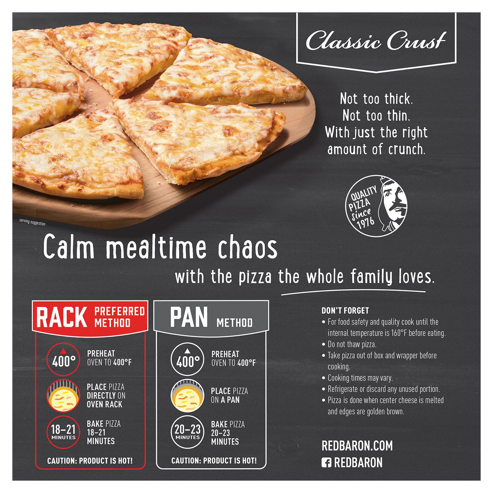 Made with zesty tomato sauce and 100% real mozzarella, cheddar, provolone, and parmesan cheese Pizzas that are not too thick, not too thin with just the right amount of crunch No artificial flavors and sauce made with real tomatoes and herbs Bake in the oven at 400°F for 17-22 minutes