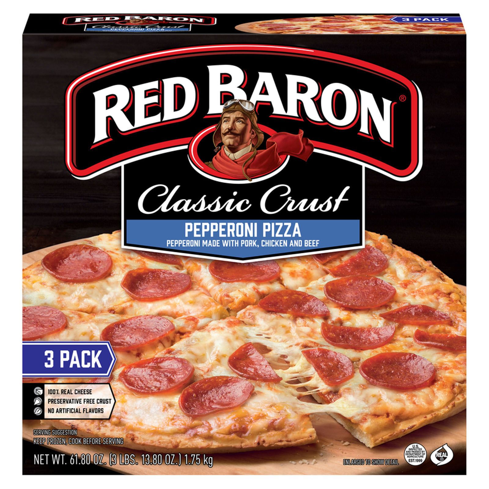 Three pack of Red Baron Pepperoni Classic Crust Frozen Pizzas, 61.80 oz
