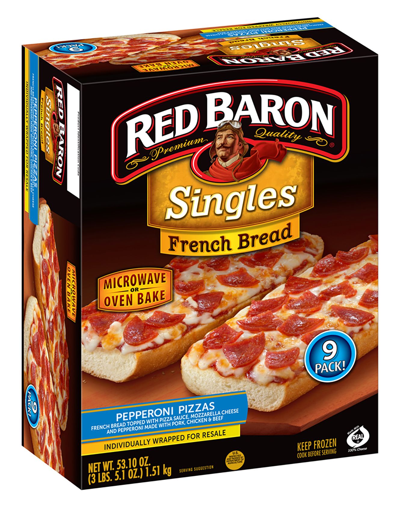 Red Baron puts a tasty twist on pizza by combining pepperoni and French bread in their individually wrapped French Bread Pepperoni Pizzas. Enjoy these pizzeria-style pizza singles as lunch, dinner or even a snack.