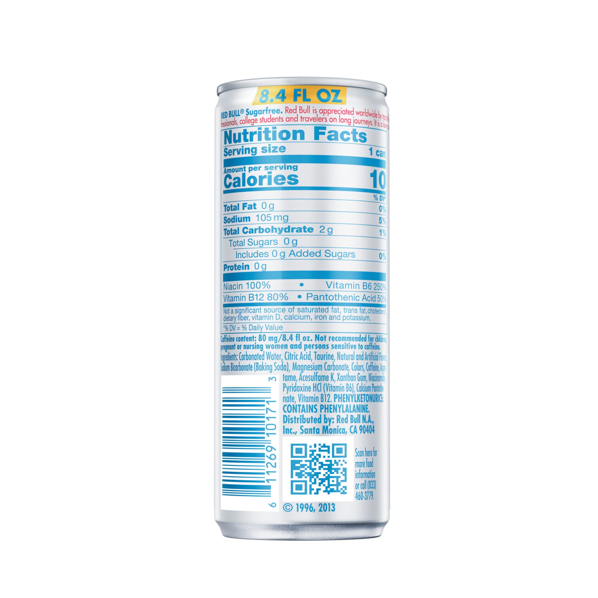 Red Bull Sugar Free Energy Drink gives you Wiiings whenever you need them. Red Bull Sugar Free is a lightly carbonated energy drink made with caffeine, taurine, B vitamins and water, that brings you the same taste and good times of Red Bull. Sweetened with acesulfame-potassium K and sucralose, Red Bull Sugar Free contains 10 calories per 8.4 fl. oz. can. While aiming for great heights during your workday, in your workouts or when gaming, why not crack open a refreshing can of Red Bull? This can of Red Bull will keep you ready for a road trip, watching the game and more. Red Bull gives you Wiiings.