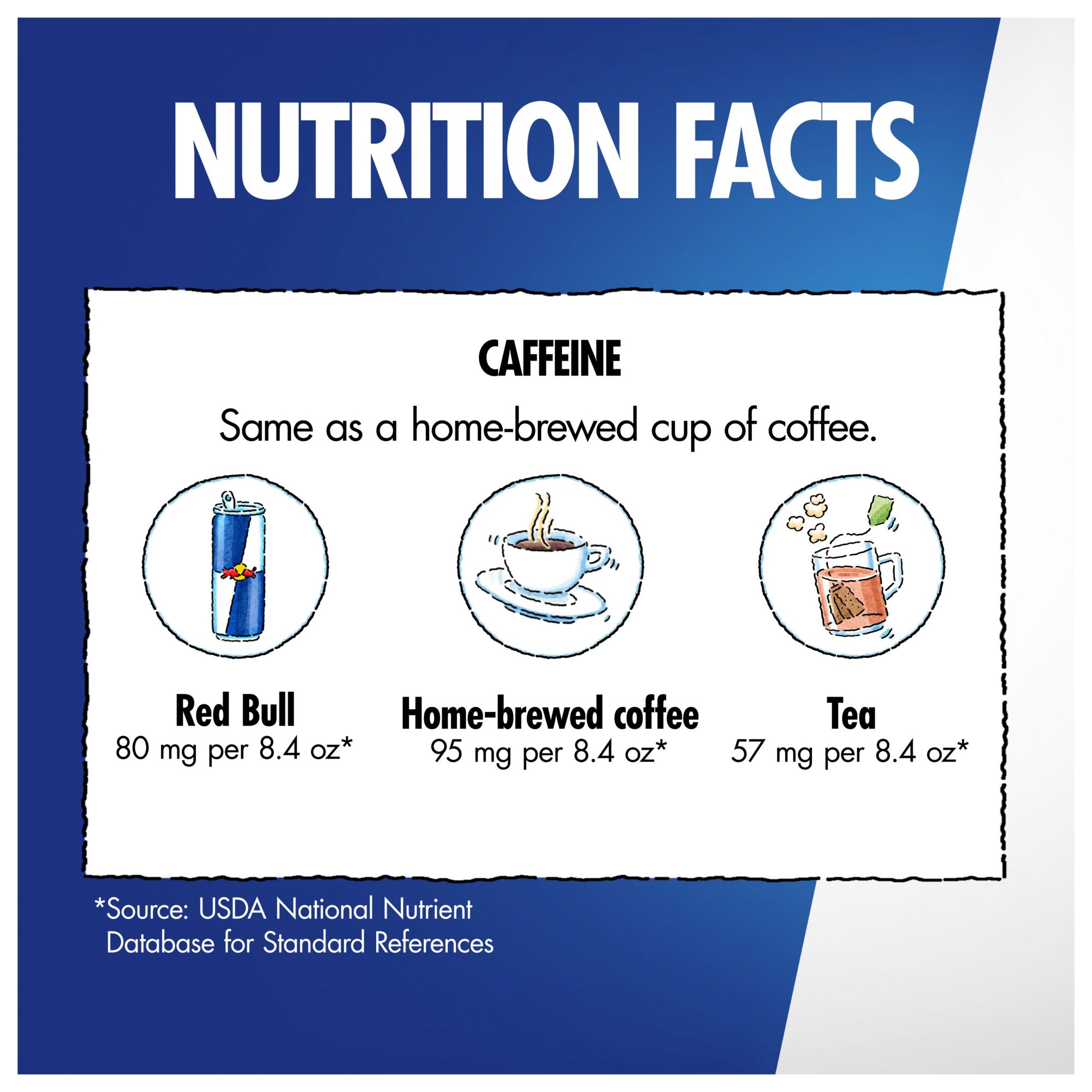 Red Bull Sugar Free Energy Drink contains 80 mg of caffeine per serving, about the same amount of caffeine as a cup of home-brewed cup of coffee