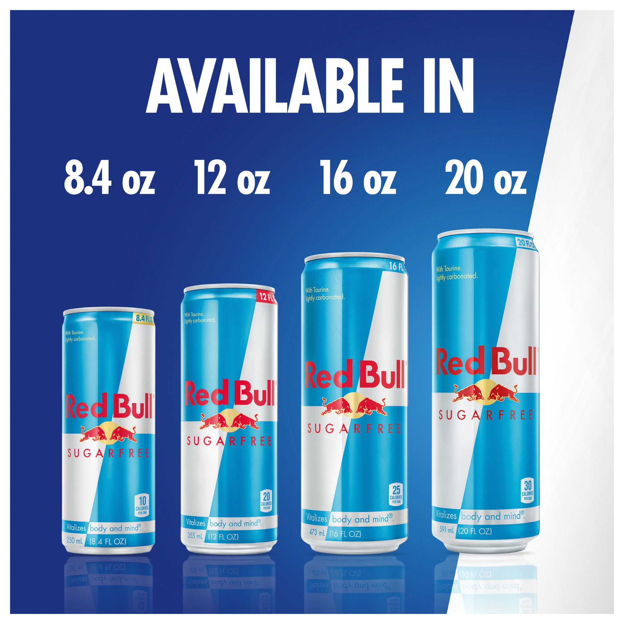 Red Bull Sugar Free Energy Drink gives you Wiiings whenever you need them. Red Bull Sugar Free is a lightly carbonated energy drink made with caffeine, taurine, B vitamins and water, that brings you the same taste and good times of Red Bull. Sweetened with acesulfame-potassium K and sucralose, Red Bull Sugar Free contains 10 calories per 8.4 fl. oz. can. While aiming for great heights during your workday, in your workouts or when gaming, why not crack open a refreshing can of Red Bull? This can of Red Bull will keep you ready for a road trip, watching the game and more. Red Bull gives you Wiiings.
