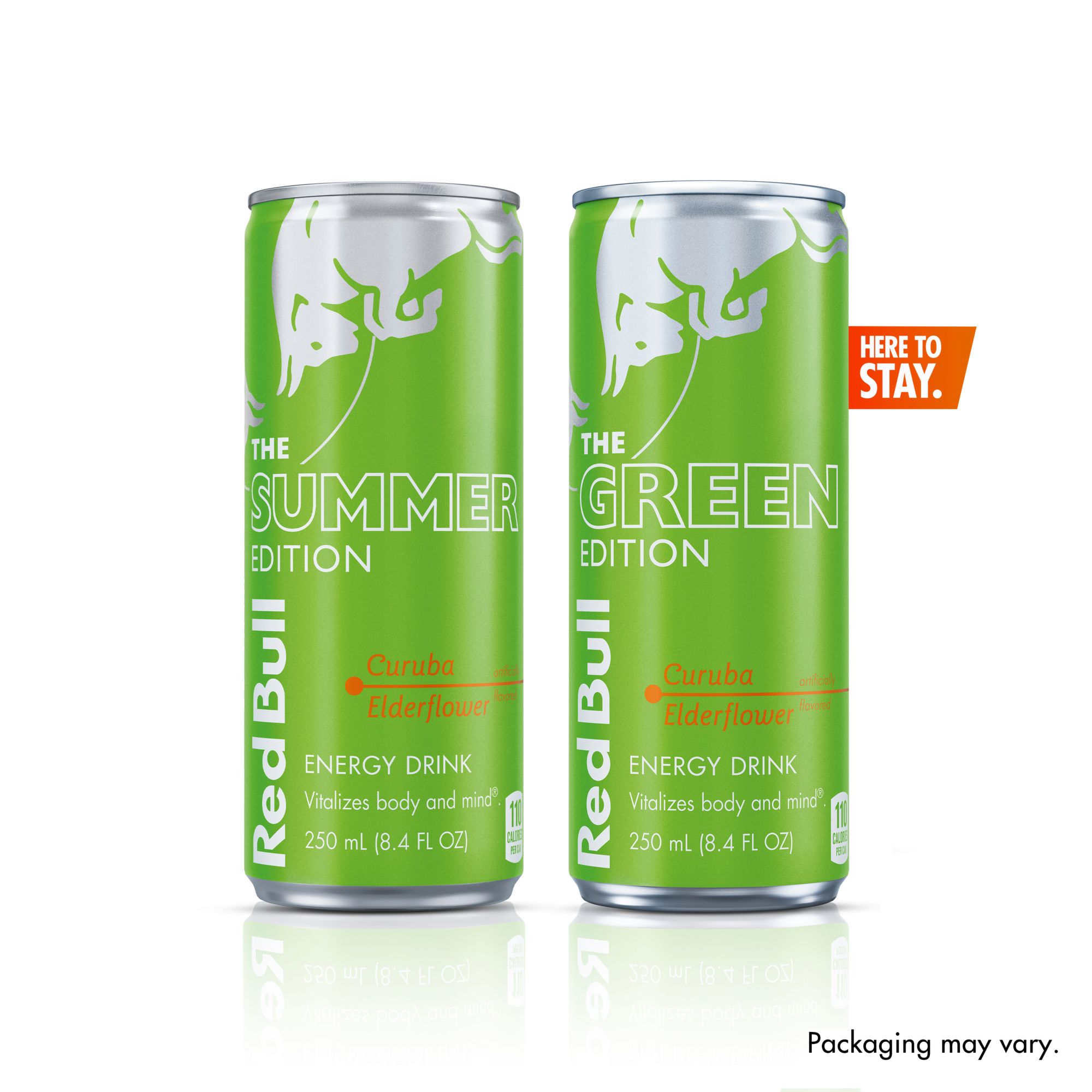 Red Bull Green Edition features a burst of Curuba, Citrus, Melon, and an Elderflower finish. This lightly carbonated beverage is enjoyed worldwide by many. A refreshing can of Red Bull makes an excellent partner for busy, active lifestyles. Each 8.4 fl. oz. can contains 80mg of caffeine per serving and 26g of sugar. It also includes Taurine, an amino acid naturally occurring in the human body, and B-group vitamins B6, B12, Niacin (B3) and Pantothenic Acid (B5). Comes in aluminum cans that can be recycled over and over. Always check can labels for the most updated product nutritional and ingredient information. Calcium and sugars values declared on labels may vary slightly depending on production locations.