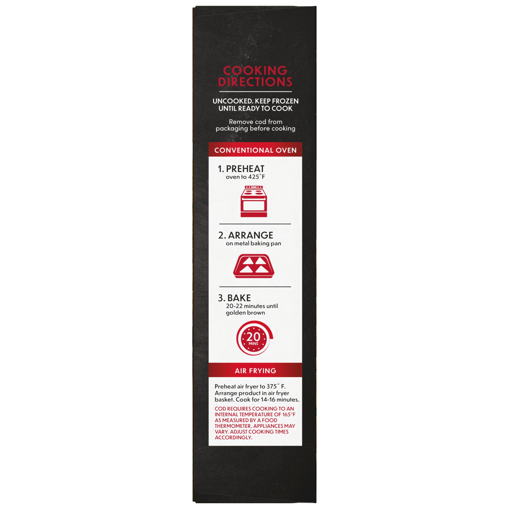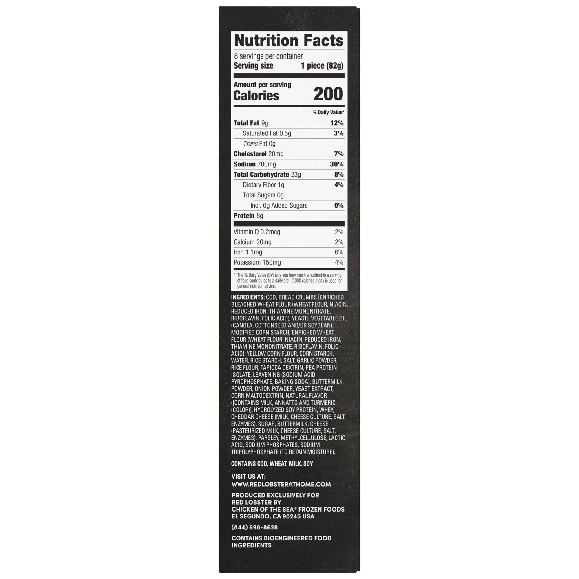 Includes cheddar biscuit coated cod, 1.45 lbs.