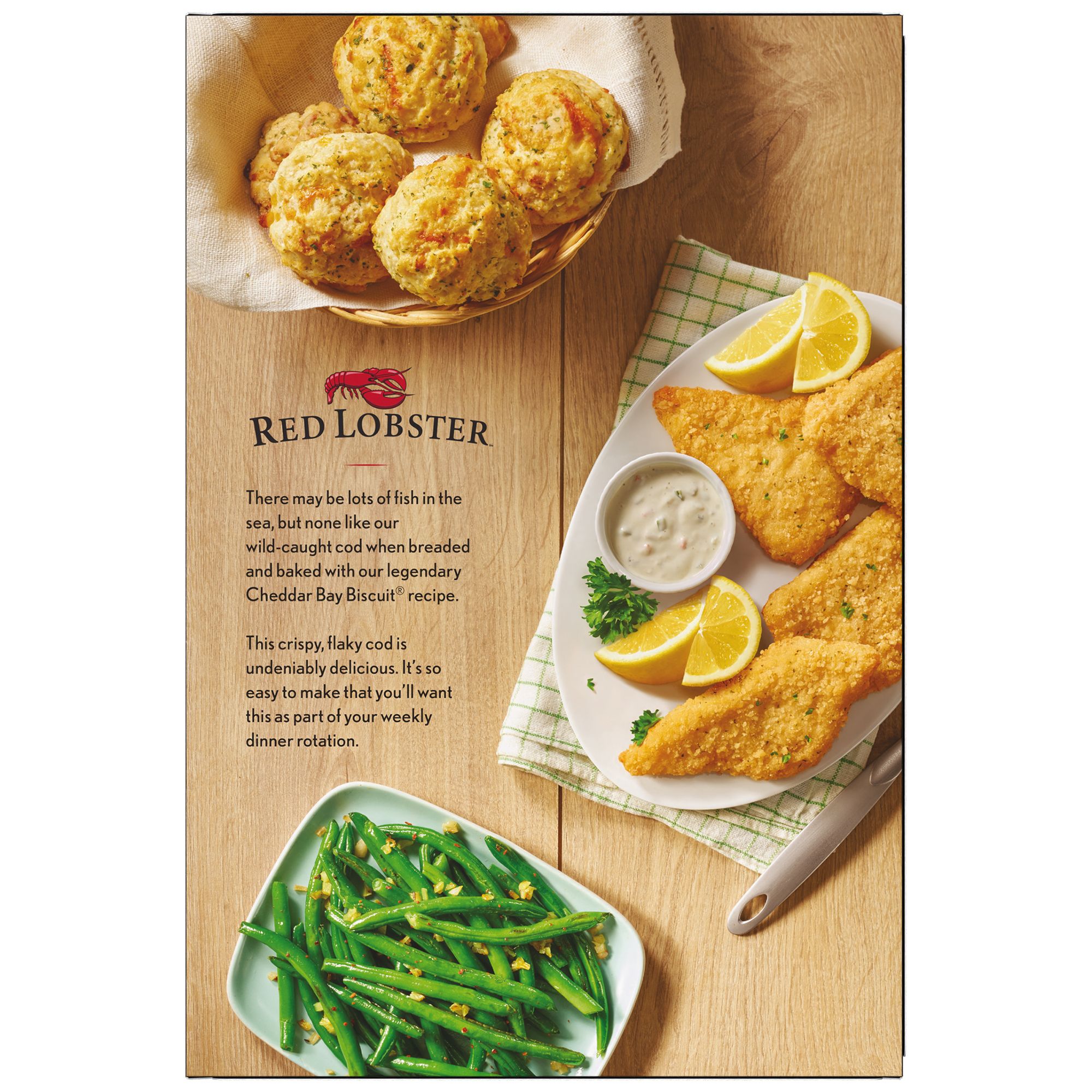 Red Lobster Cheddar Bay Biscuit Coated Cod is a fantastic new item from Red Lobster. Red Lobster's wonderful cod is combined with their signature Cheddar Bay Biscuits to create a Red Lobster experience at home. This savory meal is easily prepared in the oven or air fryer.