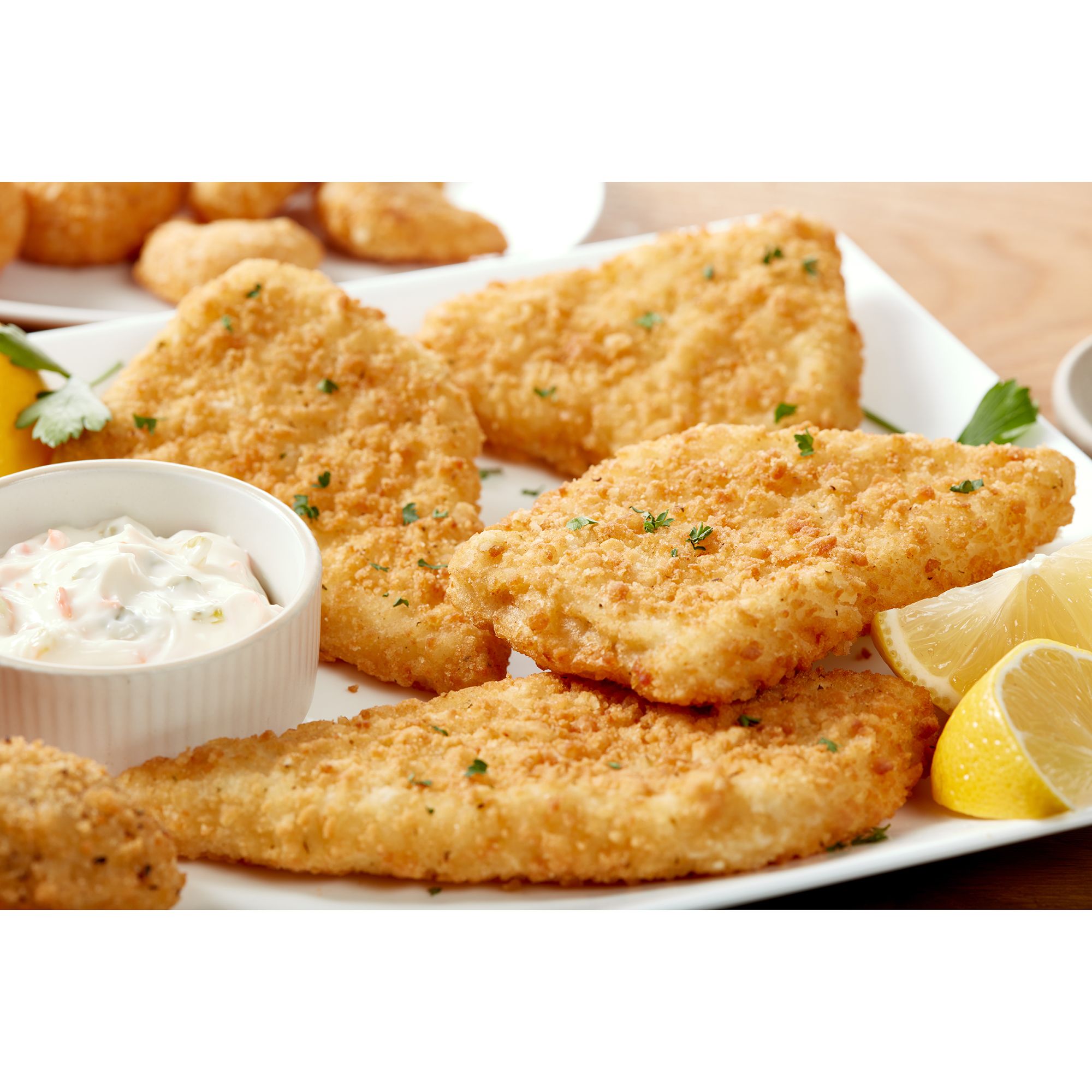 Ingredients: Cod, Bread Crumbs [Enriched Bleached Wheat Flour (Wheat Flour, Niacin, Reduced Iron, Thiamine Mononitrate, Riboflavin, Folic Acid), Yeast], Vegetable Oil (Canola, Cottonseed And/or Soybean), Modified Corn Starch, Enriched Wheat Flour (Wheat Flour, Niacin, Reduced Iron, Thiamine Mononitrate, Riboflavin, Folic Acid), Yellow Corn Flour, Corn Starch, Water, Rice Starch, Salt, Garlic Powder, Rice Flour, Tapioca Dextrin, Pea Protein Isolate, Leavening (Sodium Acid Pyrophosphate, Baking Soda), Buttermilk Powder, Onion Powder, Yeast Extract, Corn Maltodextrin, Natural Flavor ([Contains Milk, Annatto And Turmeric (Color)], Hydrolyzed Soy Protein, Whey, Cheddar Cheese (Milk, Cheese Culture, Salt, Enzymes), Sugar, Buttermilk, Cheese (Pasteurized Milk, Cheese Culture, Salt, Enzymes), Parsley, Methylcellulose, Lactic Acid, Sodium Phosphates, Sodium Tripolyphosphate (To Retain Moisture).