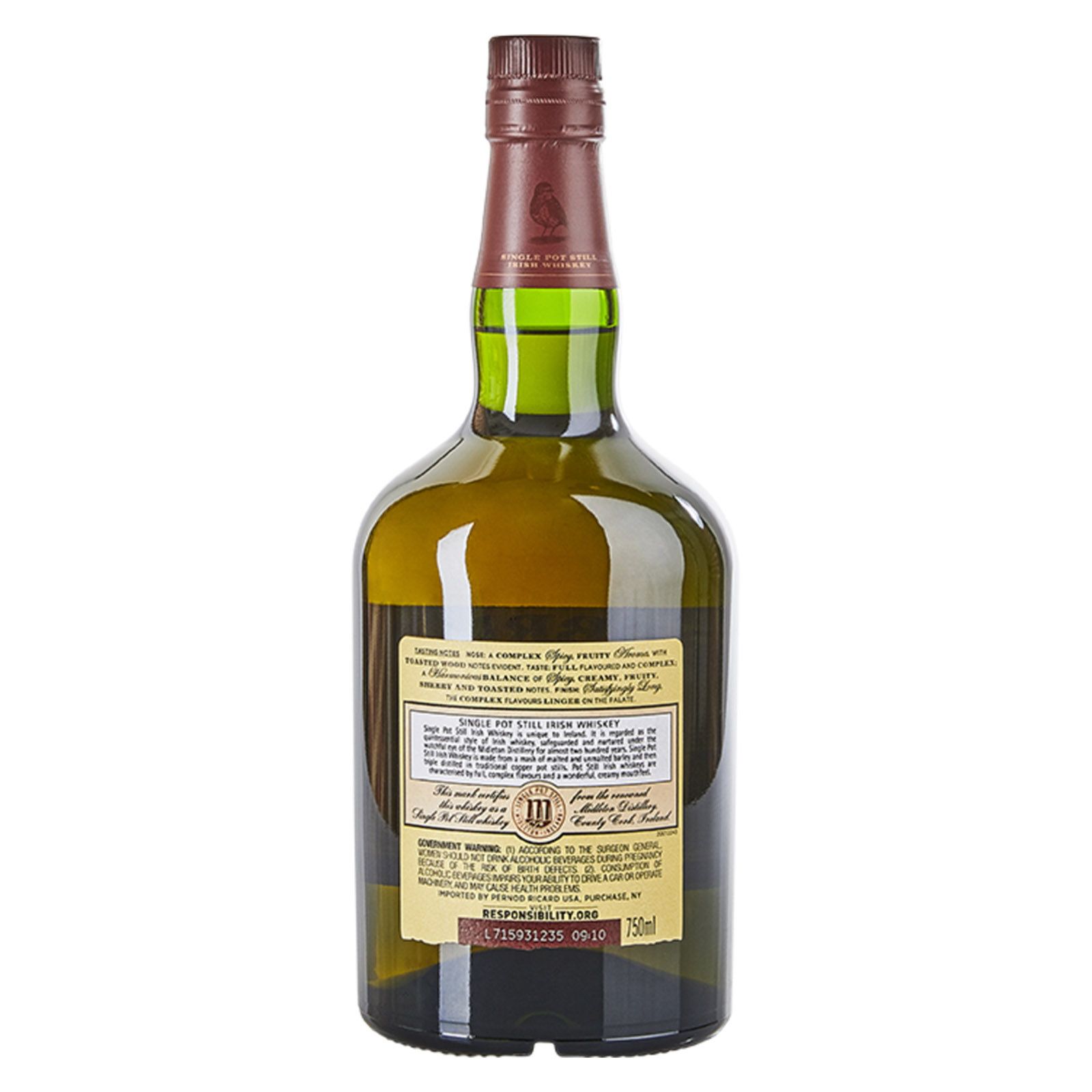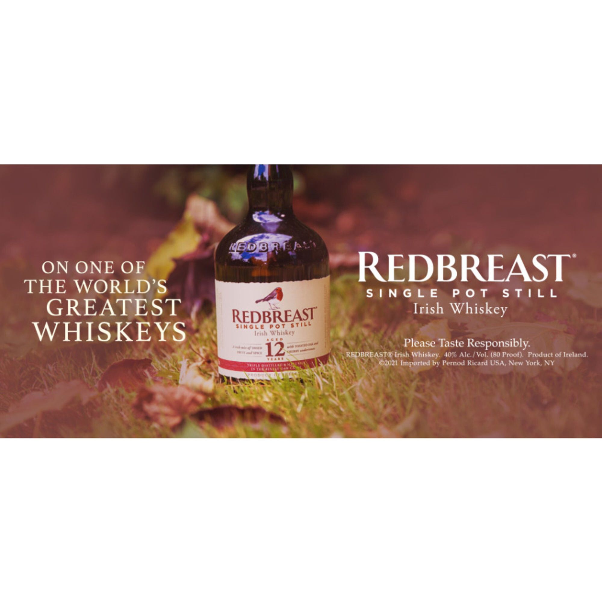 Includes: One 750 mL bottle of Redbreast 12 Year Old Single Pot Still Irish Whiskey; 80 proof or 40% alcohol by volume; Enjoy and drink responsibly