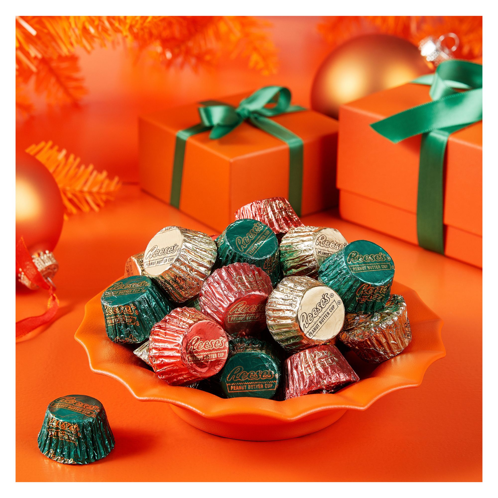 Fill holiday candy dishes and gift baskets with Reese's Miniatures cups to spread some holiday cheer