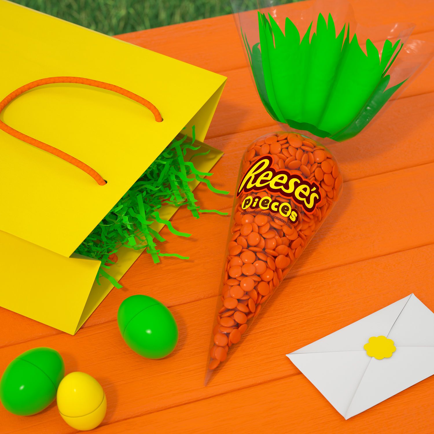 Gift these creamy, crunchy Reese's Pieces candies in carrot-shaped bags to help you and your family celebrate Easter in the sweetest way possible