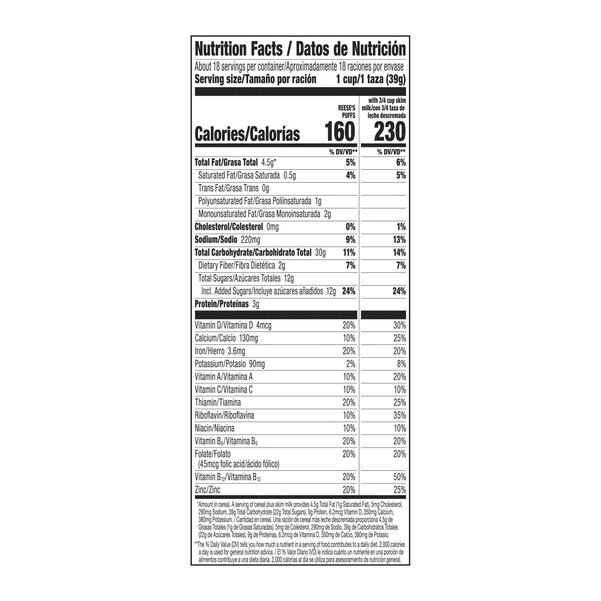 Start your day with the chocolatey peanut butter taste of Reese's Puffs Chocolatey Peanut Butter Cereal. These sweet, crunchy corn puffs are made with real Reese's peanut butter for a breakfast cereal like no other. Pour yourself a bowl in the morning, then pass the box to the rest of your family. Take along Reese's Puffs for peanut butter snacks after class. Fill up your biggest bowl for party snacks. Toss a handful as ice cream toppings over your late-night sundae. However you enjoy your Puffs, this peanut buttery, chocolatey cereal delivers the perfect flavor combination. Reese's Puffs cereal is made with 15 grams of whole grains per serving (at least 48 grams recommended daily). Plus, the tasty kids cereal has no high fructose corn syrup. So whether you're looking for a delicious kids breakfast food, ingredients for chocolate cereal bars or school snacks for kids, General Mills cereals spread goodness from tots to grown-ups.