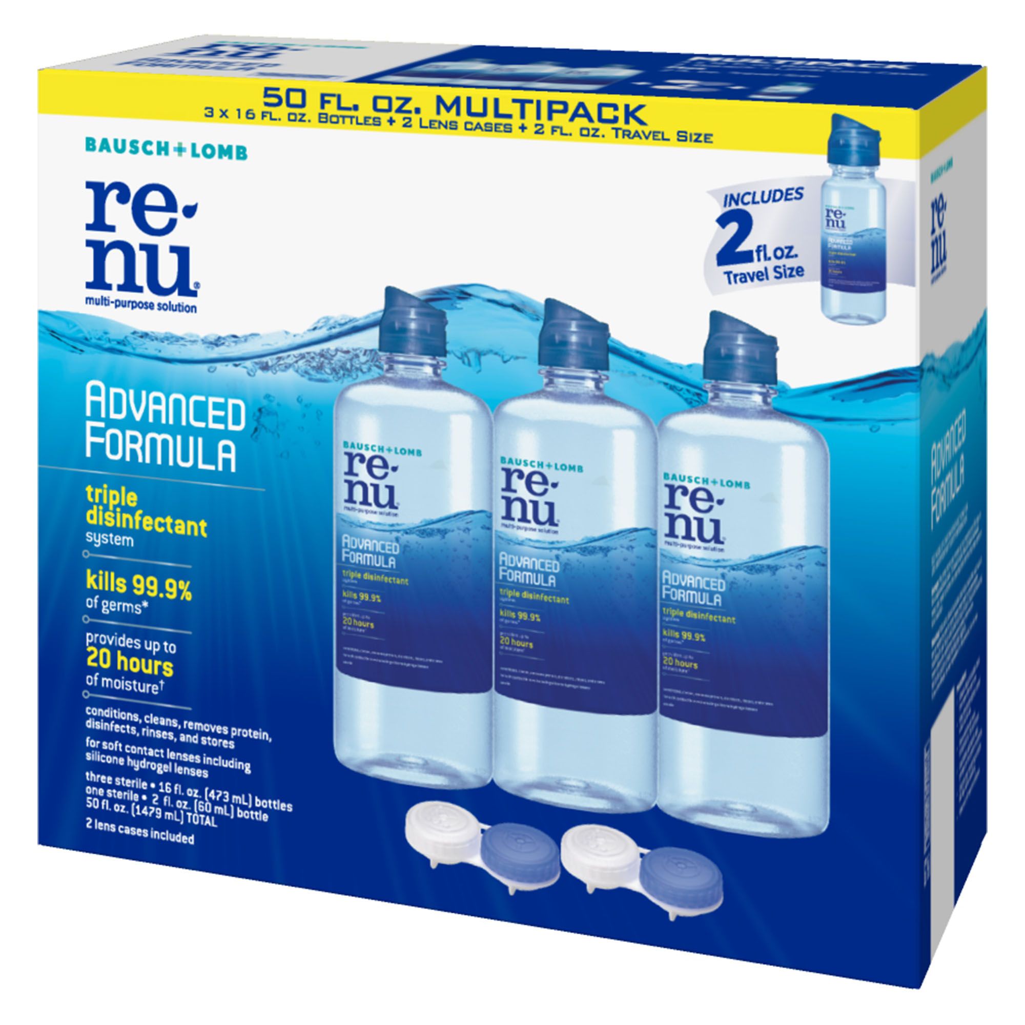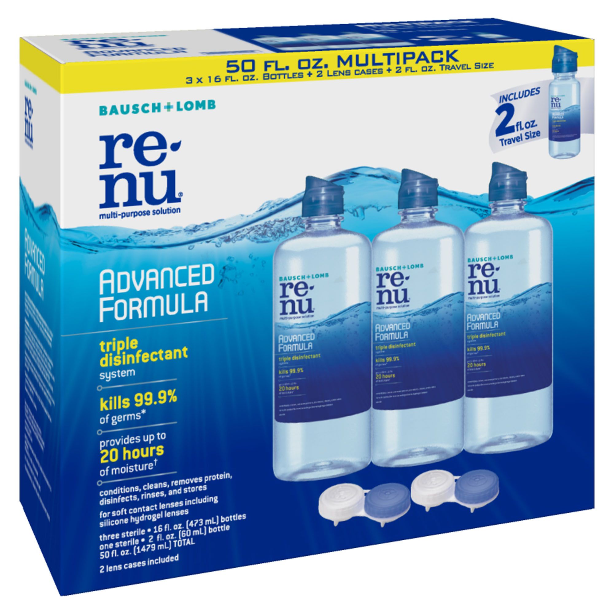 Renu Advanced Formula Disinfectant for Soft Contact Lenses is a multi-purpose solution cleans and disinfects your lenses and helps keep them comfortable all day long.
