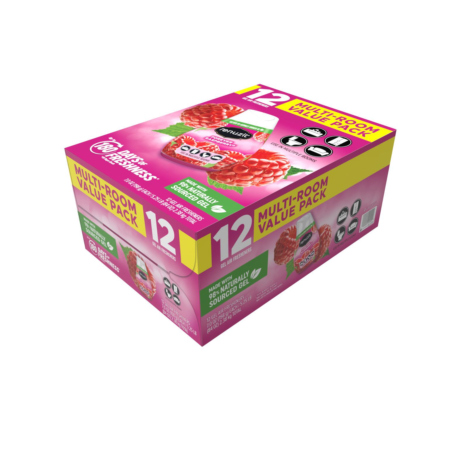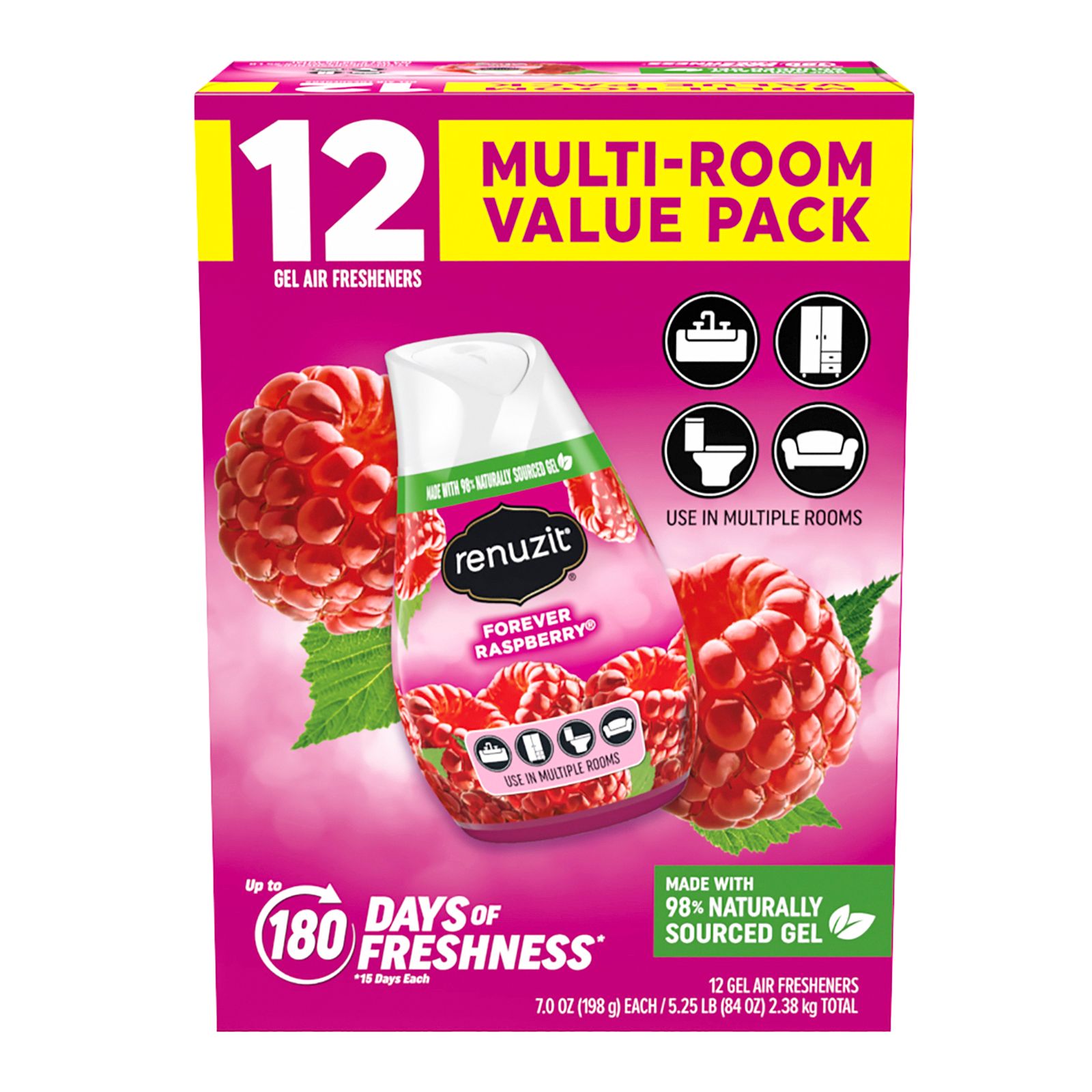 Like a basket full of fresh-picked raspberries, Forever Raspberry air freshener cone is perfect to make any room of your home, especially small spaces like bathrooms and closets, smell like a summer day at the Farmer’s Market. Renuzit Cone Air Fresheners are made with 98% biodegradable gel. This package includes twelve 7 ounce gel air fresheners in Forever Raspberry scent.