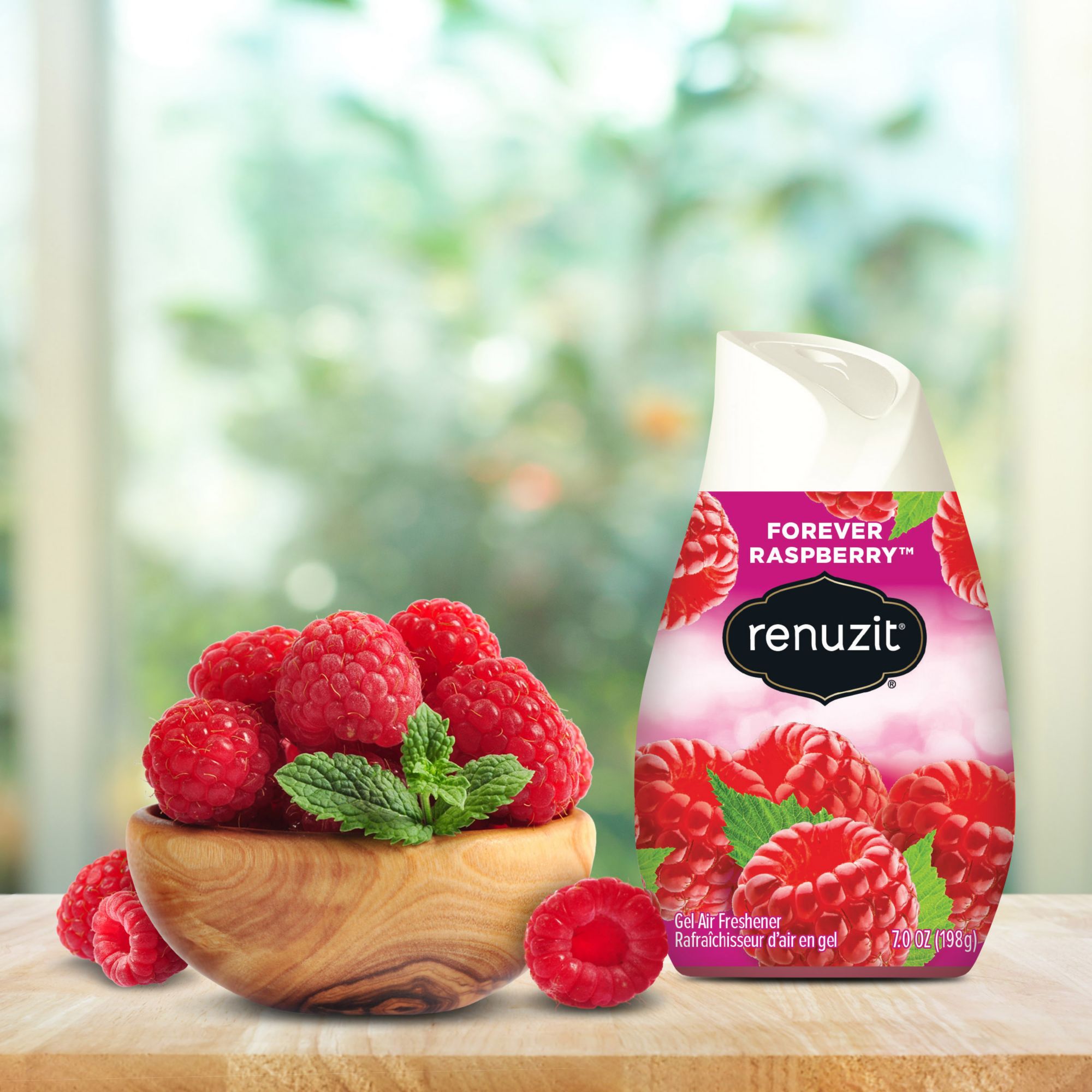 Renuzit air freshener cone features the fragrance of freshly-picked raspberries Solid air freshener cone adjusts to the level of fragrance perfect for you Great for continuous freshness in small spaces, such as bathrooms, closets and next to the kitchen sink Simply pull to your preferred fragrance level – pull all the way up for the most fragrance and twist down to decrease fragrance level, no outlets or batteries needed Made with 98% biodegradable gel