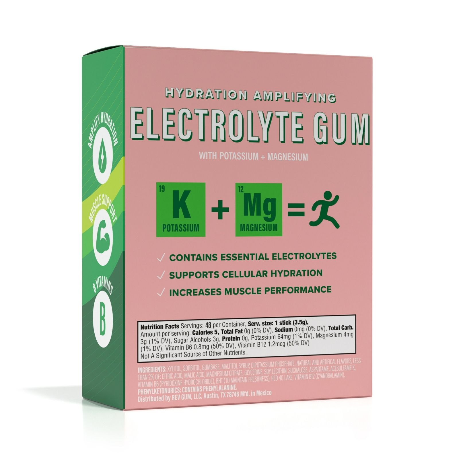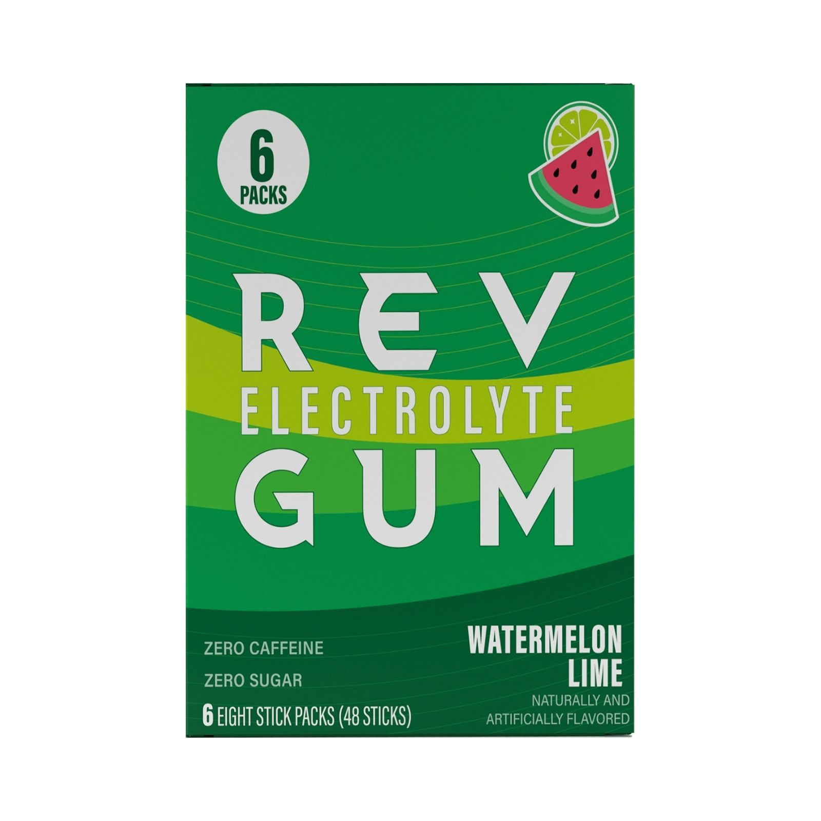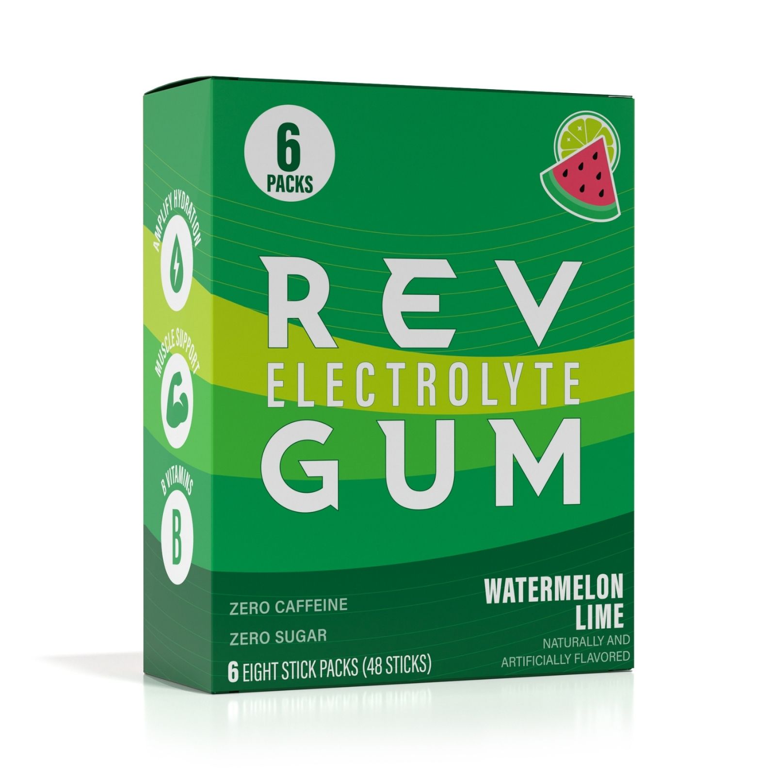 Includes electrolyte gum in watermelon lime flavor, 6 packs