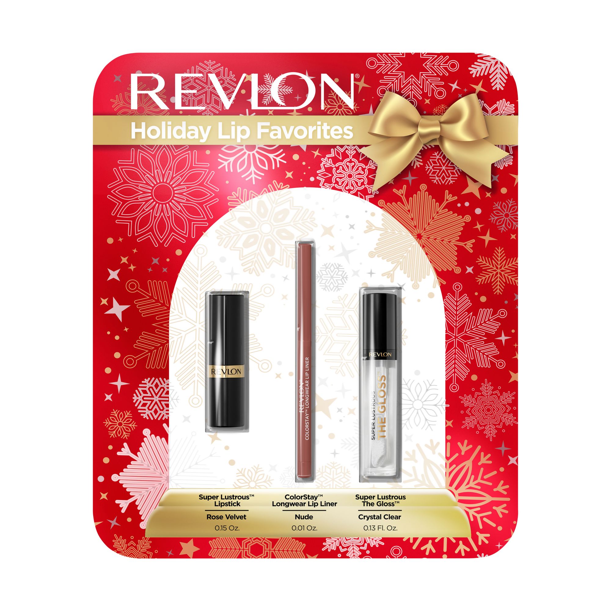 Set includes Revlon Super Lustrous Lipstick - Rose Velvet, Revlon Colorstay Lip Liner - Nude, Revlon Super Lustrous The Gloss - Crystal Clear