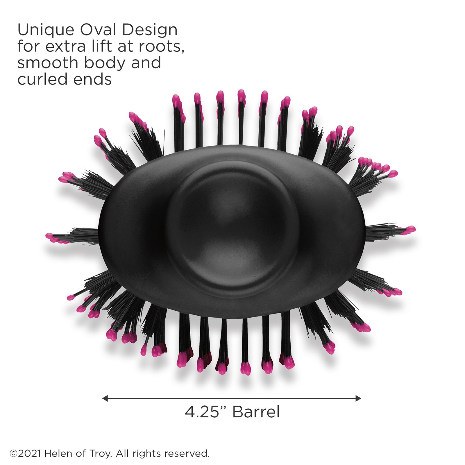 Oval brush design Less Time, Less Damage Mixed natural bristles Ionic technology Ceramic coating 3 Heat Settings Lightweight design Tangle free swivle cord